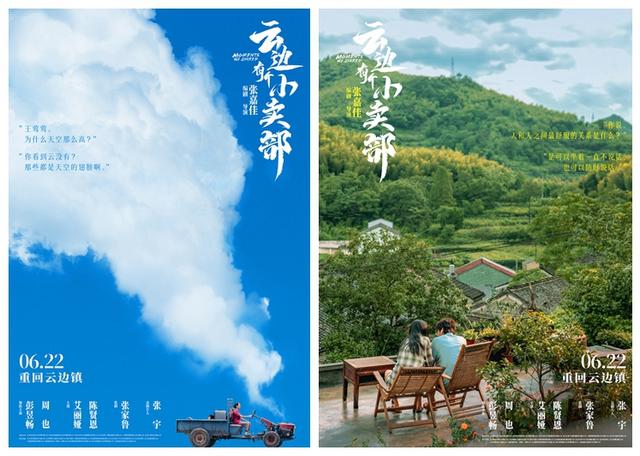 新京报讯(记者滕朝)5月31日,电影《云边有个小卖部》发布一组海报,正式宣布6月22日在国内上映。蔚蓝色的天空下,外婆王莺莺开着拖拉机载着刘十三,拖拉机排气筒喷出的烟雾幻化成了悄然聚散的云彩,组成了海报蓝白相间的主视觉;静谧的山林旁,刘十三(彭昱畅饰)和程霜(周也饰)在外婆家的天台上相处的片刻时光,安逸又美好。海报对小说“名场面”和云边镇氛围的视觉化呈现,戳中了无数读者的心尖。