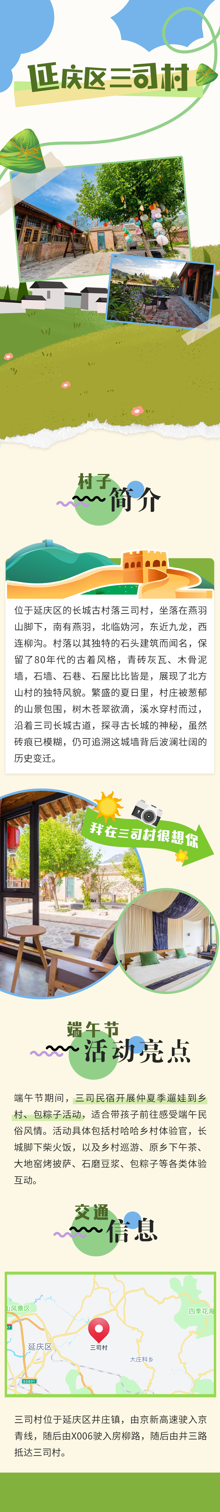 端午节期间,北京市文化和旅游局以“看山·望水·享民俗”为主题推出5个各具特色的京郊乡村,丰富多彩的民俗活动,让市民游客在纵情山水的同时,感受浓厚的端午节日氛围,解锁盛夏度假新玩法。