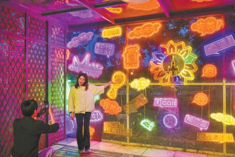 “夜越深,这里的人气儿越旺!”北展相关负责人介绍。初夏时节,北展商圈各家门店迎来了客流高峰,客人多是周边居民以及看展览和演出的观众。五彩斑斓的灯光亮起,园区夜色璀璨,北展东街的蔷薇花墙吸引人们打卡拍照,遛娃的居民纷纷来到北展剧场北侧的绿地花园。