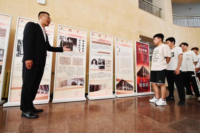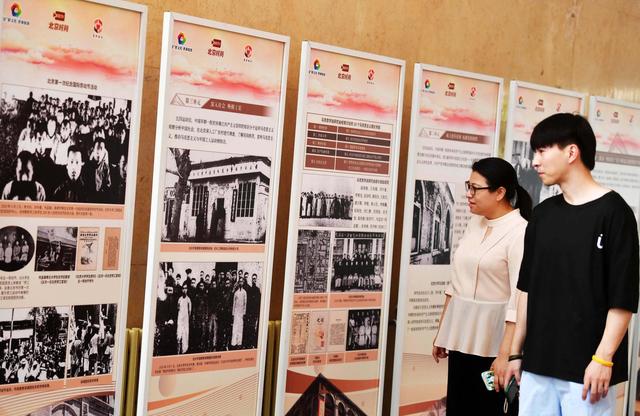 “北京有着悠久的历史积淀和灿烂的革命文化,是五四运动的爆发地,也是中国共产党的主要孕育地之一……”北理工7号教学楼一层大厅内,一张张图文并茂的展板依序排列,北大二院旧址讲解员王赞博向学生讲述着中国共产党的伟大开篇。在展板的显著位置,有一副李大钊书写的对联——“铁肩担道义,妙手著文章”,字体刚劲有力,吸引了不少师生驻足观看。北理工自动化学院研一学生洪锐说,作为当代大学生,也要心怀“铁肩担道义”的责任感和使命感,用所学所思报效祖国。