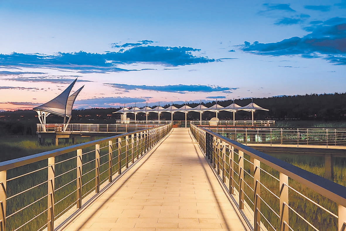 新完工的夜景照明设施给整个码头披上了一层光晕,为市民提供了一处欣赏潮白河夜景的绝佳场所。 顺义区水务局供图