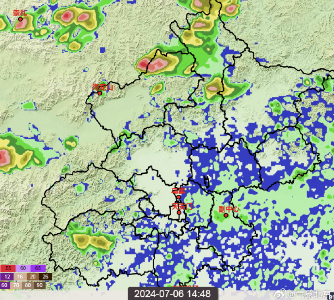 目前延庆、怀柔和房山已出现降雨回波,有雷阵雨天气 。