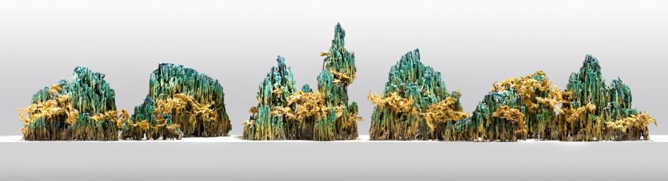 此次展览通过“古法新意”“匠心铜运”“雕铜巧技”“艺出新裁”四个单元,展出100余件造型多样、题材广泛的制铜精品,从不同角度阐释中国铜雕技艺从“铸鼎象物”到“离形得似”的艺术蜕变。其中,朱炳仁在2022年创作的《千里江山》,以北宋画家王希孟《千里江山图》为灵感,以彩铜的绚丽与立体,将宋朝的壮丽江山重现眼前。它从平面的画卷中跃然而出,化为立体之景。