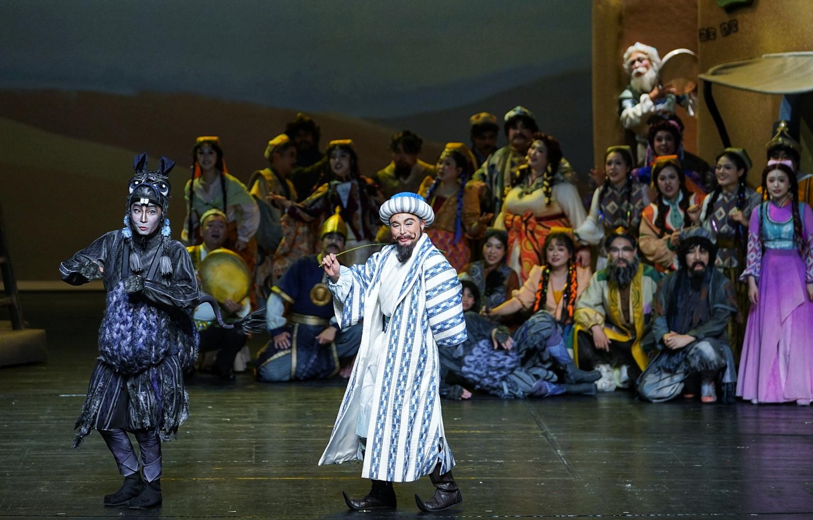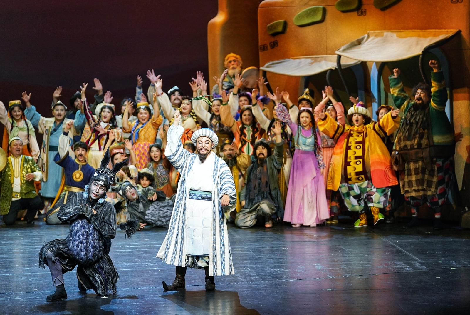 面向小观众的作品总是天然带有艺术普及的情怀,《阿凡提之真假阿凡提》亦是如此,主旨立意上,它通过讲述阿凡提智斗假阿凡提、启发太阳城的小国王惜物爱民的故事,传达了对真善美的永恒追求。这部作品的创演团队之强大可谓不惜余力,青年作曲家宝宝、编剧董妮、导演毛尔南等艺术家联袂创作,酝酿打磨历时两年,王宏伟、关致京、梅杰、梁羽丰以及金郑建、王鹤翔、李俊贤、孙诗博各自领衔的两组演员阵容即便放在国内任何一部歌剧中,都是当之无愧的“高配”班底。在剧组的共同努力下,《阿凡提之真假阿凡提》展开了一个可爱梦幻的童话世界:如同泥巴捏成的太阳城里,机智善良的阿凡提、贪婪狡猾的假阿凡提、勤劳淳朴的帕丽达、各随主人性格的好驴坏驴……一众角色纷纷登场,从穿着到性格,每个都特质鲜明。
