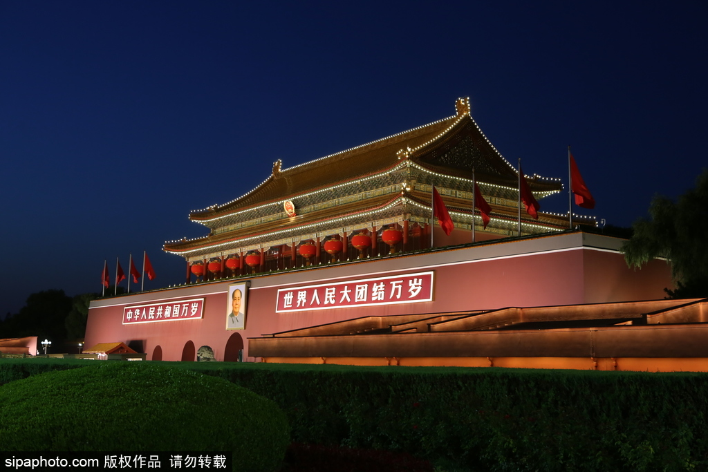 夜幕降临,华灯初上。在北京中山公园的东南角,紫薇盛放,暗香袭来,不远处就是亮灯的天安门城楼,宏伟壮观。