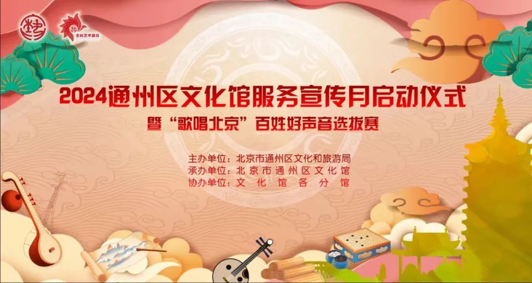为进一步宣传贯彻落实《北京市公共文化服务保障条例》,聚焦全国文化中心建设,由通州区文化和旅游局主办,通州区文化馆承办的2024通州区文化馆服务宣传月即将启动。