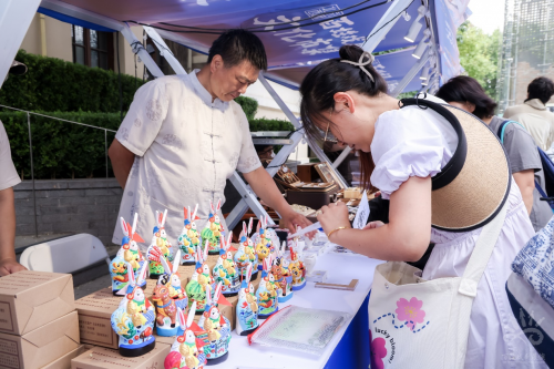 走进市集,这里不仅是商品展售平台,更是戏剧文化交流的舞台。戏剧爱好者可以找到戏剧文创周边,并了解西城多家剧院剧场上演的精彩剧目。国家话剧院的“剧”主题票夹、《大宅门》戏剧冰箱贴,国家京剧院推出的各种精致国风纹饰箱包,鼓楼西剧场经典剧目《边城》《枕头人》《我是月亮》的周边主题文创品等吸引了市民的目光。