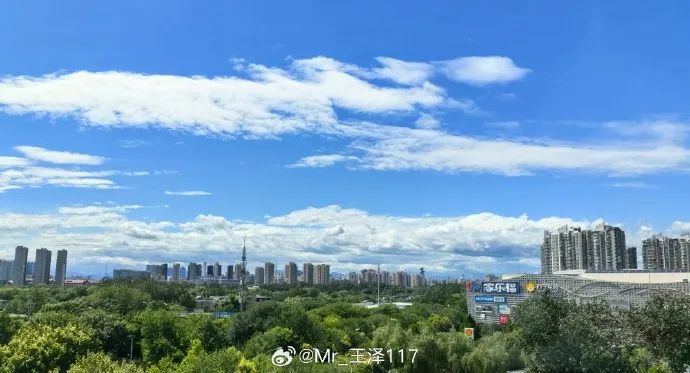 白云升远岫,摇曳入晴空。立秋节气过后,北京进入“天高云淡”模式。湛蓝的天空中白云浮动,美如画卷。热爱生活的北京网友迅速按下快门,记录美好时刻!