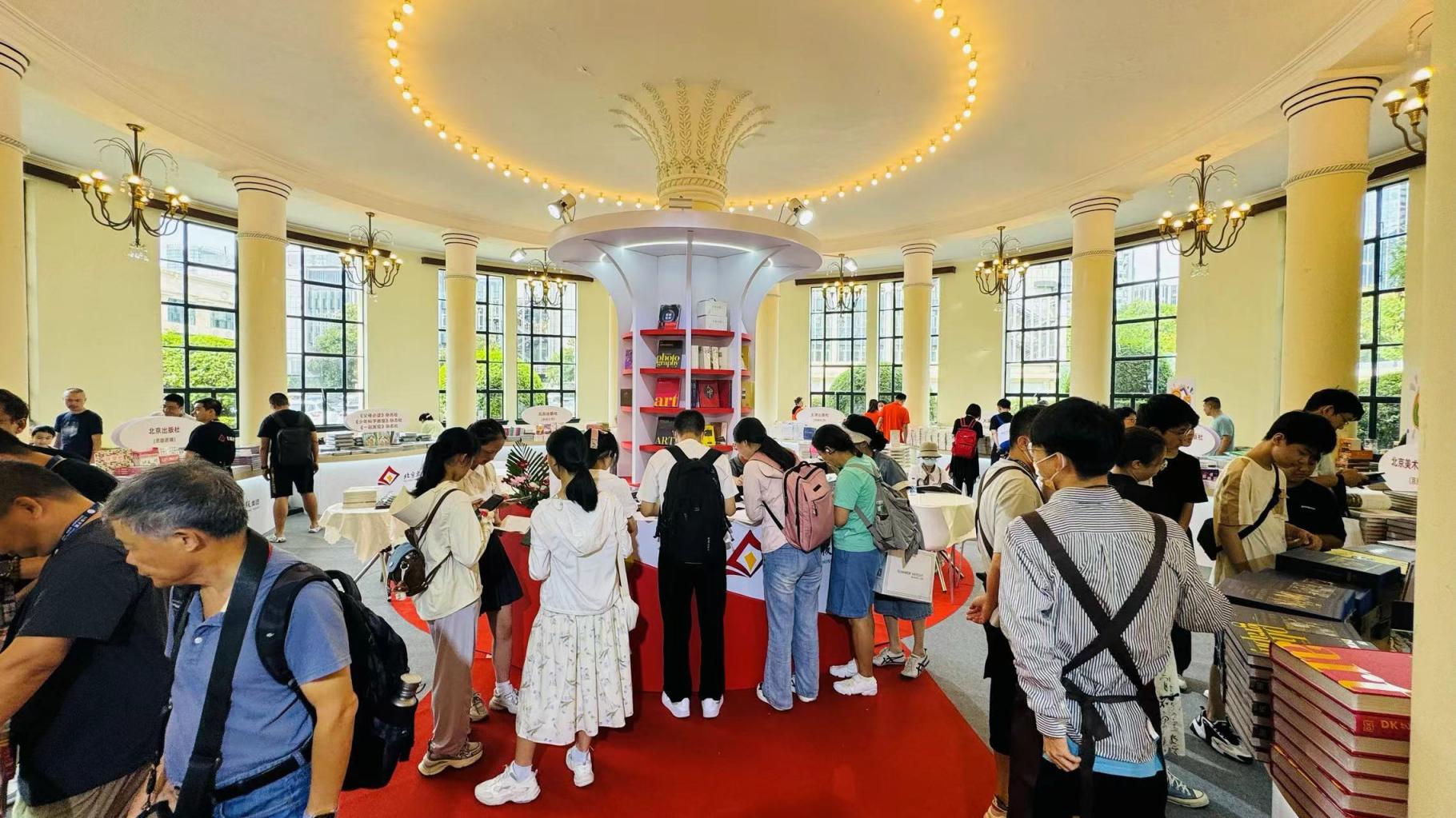 为庆祝“北京中轴线”申遗成功,现场特设立“中轴线专区”,集中展销《北京中轴线文化游典》《天地中和:北京中轴线文化遗产》《中轴线与北京古河道》等北京中轴线及相关历史文化类产品,多维度讲好北京中轴线故事,阐释、宣传中轴线文化内涵,吸引现场读者纷纷翻阅,一同感受中轴线的独特魅力。