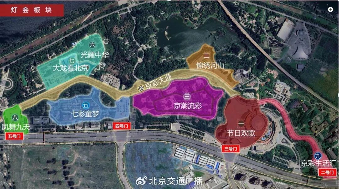 作为国家级非物质文化遗产,自贡彩灯再度亮相京城。灯会共有节日欢歌、京彩大道、锦绣河山、京潮流彩、七彩童梦、大戏看北京、光耀中华、凤舞九天、京彩生活汇九大主题展区,展出200余组彩灯,其中大中型彩灯就达到了75组,彩灯挂件共10万件。