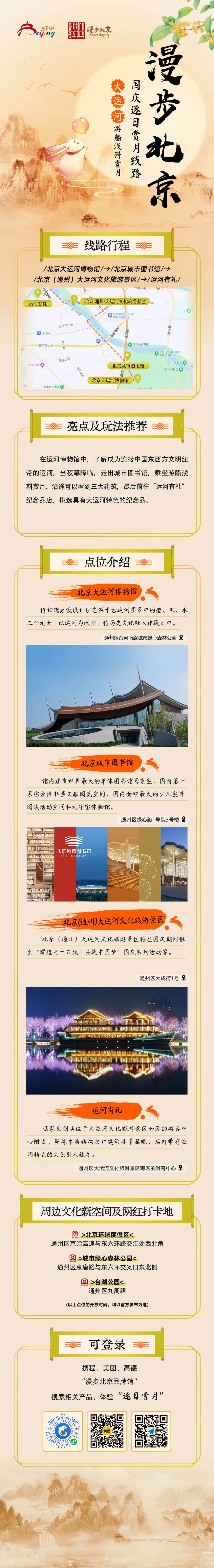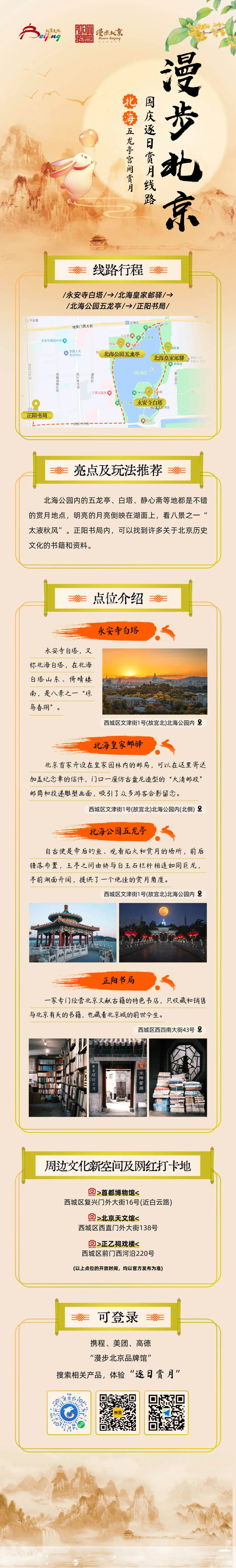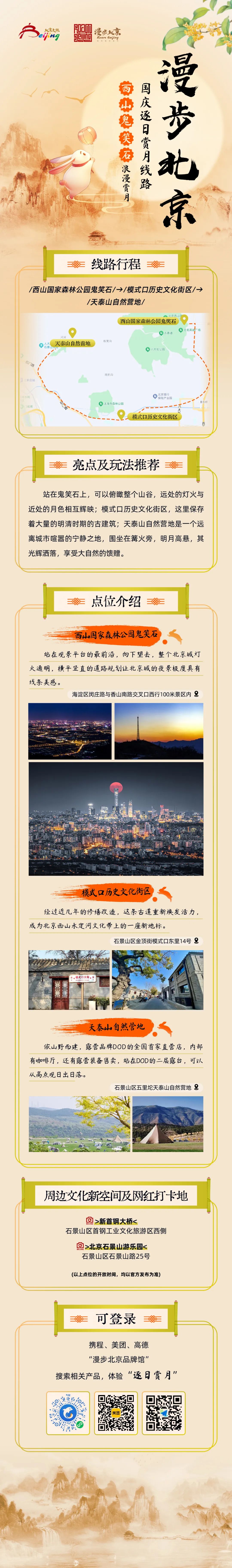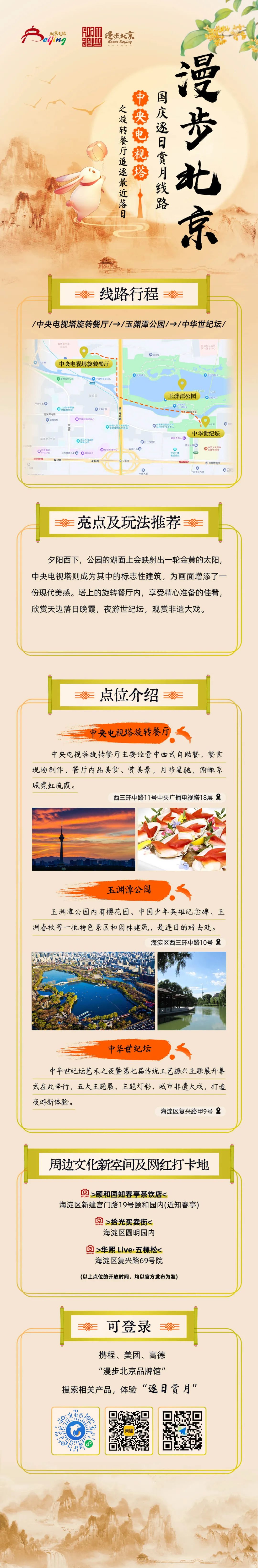 国庆来临之际,跟着文旅君的脚步,去追逐北京最美的落日余晖,去欣赏北京最浪漫的月色黄昏,去看北京史上最大灯会园博园“京彩灯会”,去逛北京最大的国家会议中心和首钢园的服贸会,去感受刚刚申遗成功的北京第八项世界文化遗产——北京中轴线的壮美。
