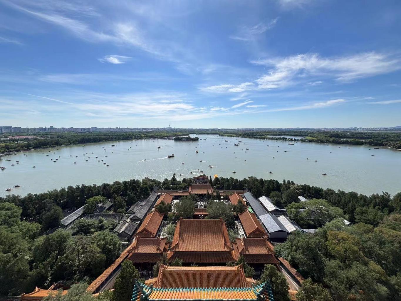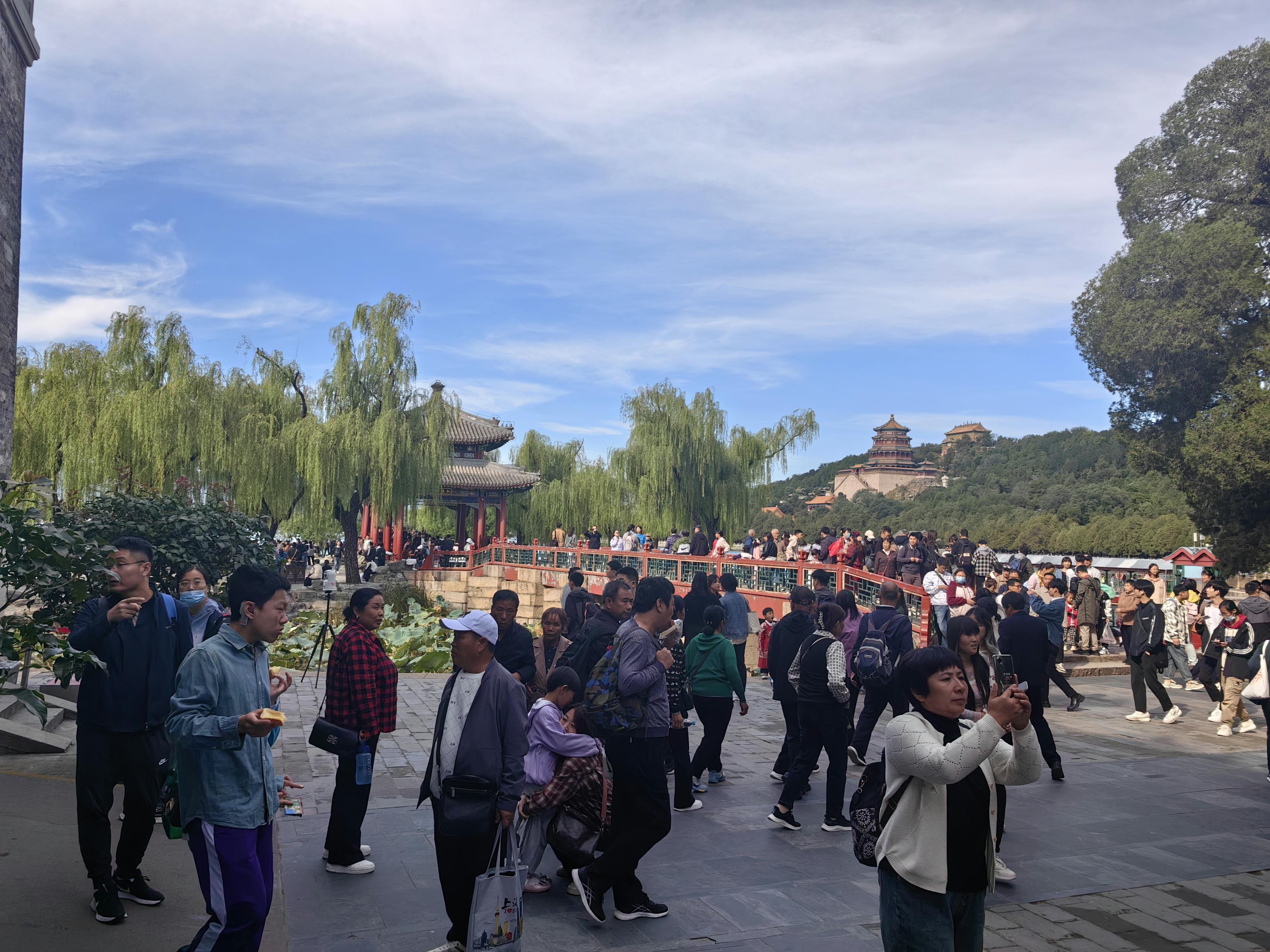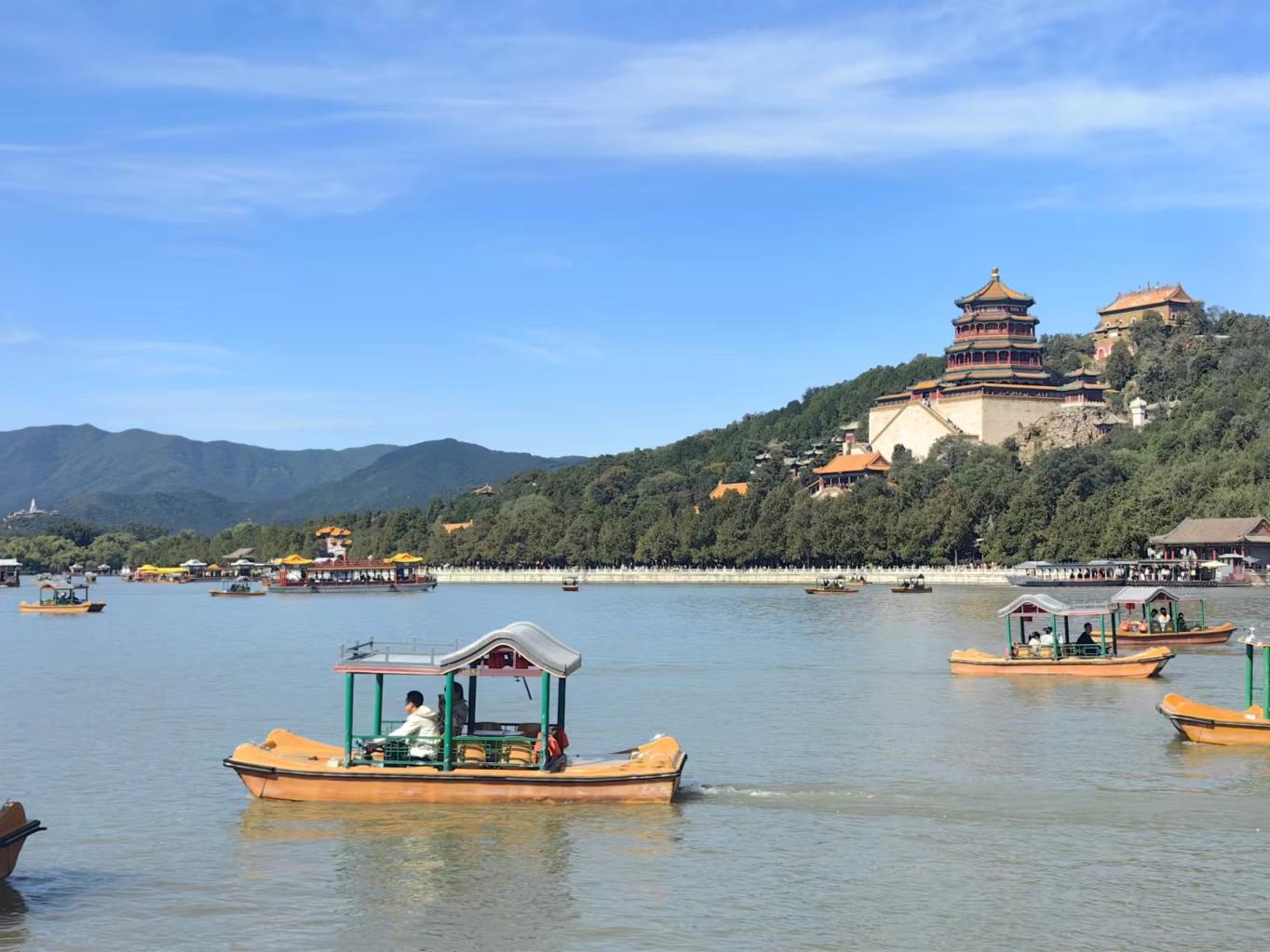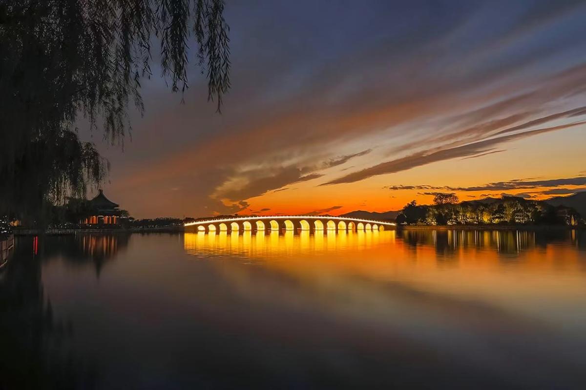今年国庆节,颐和园着力打造全天候游园氛围,除了花坛、花境、道旗、红灯笼等节日布置,夜晚的“金光穿洞”更是成为了颐和园夜间打卡点。国庆假期期间,每日18:30颐和园佛香阁、文昌阁、知春亭、南湖岛、石舫、十七孔桥等区域同时亮起灯光,灯光自佛香阁蜿蜒至南湖岛,群星下明亮的昆明湖沿线明亮绚丽。据介绍,景观照明将在国庆假期期间开启,每日持续至20:30。