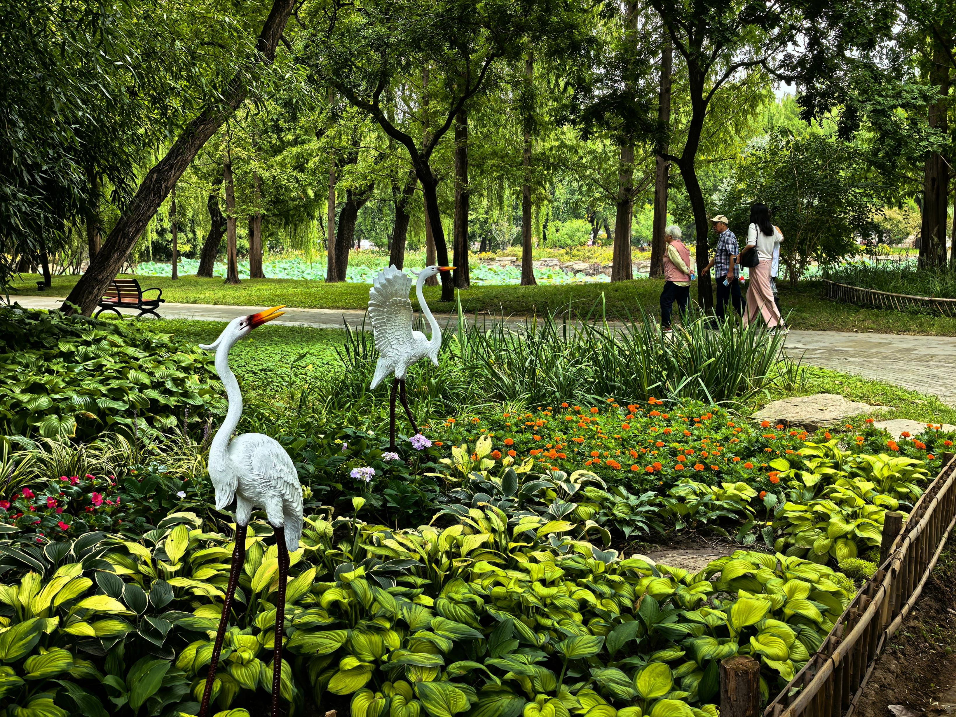 昂首的龙头、隽秀飘逸的象形字……沿着颐和园东宫门外的疏导路线穿过火红的道旗步入广场,两组花坛布置在通道两侧,在广场上格外显眼,湛蓝的天空与花坛热烈的红色,让国庆第二天的“氛围感”被拉满。