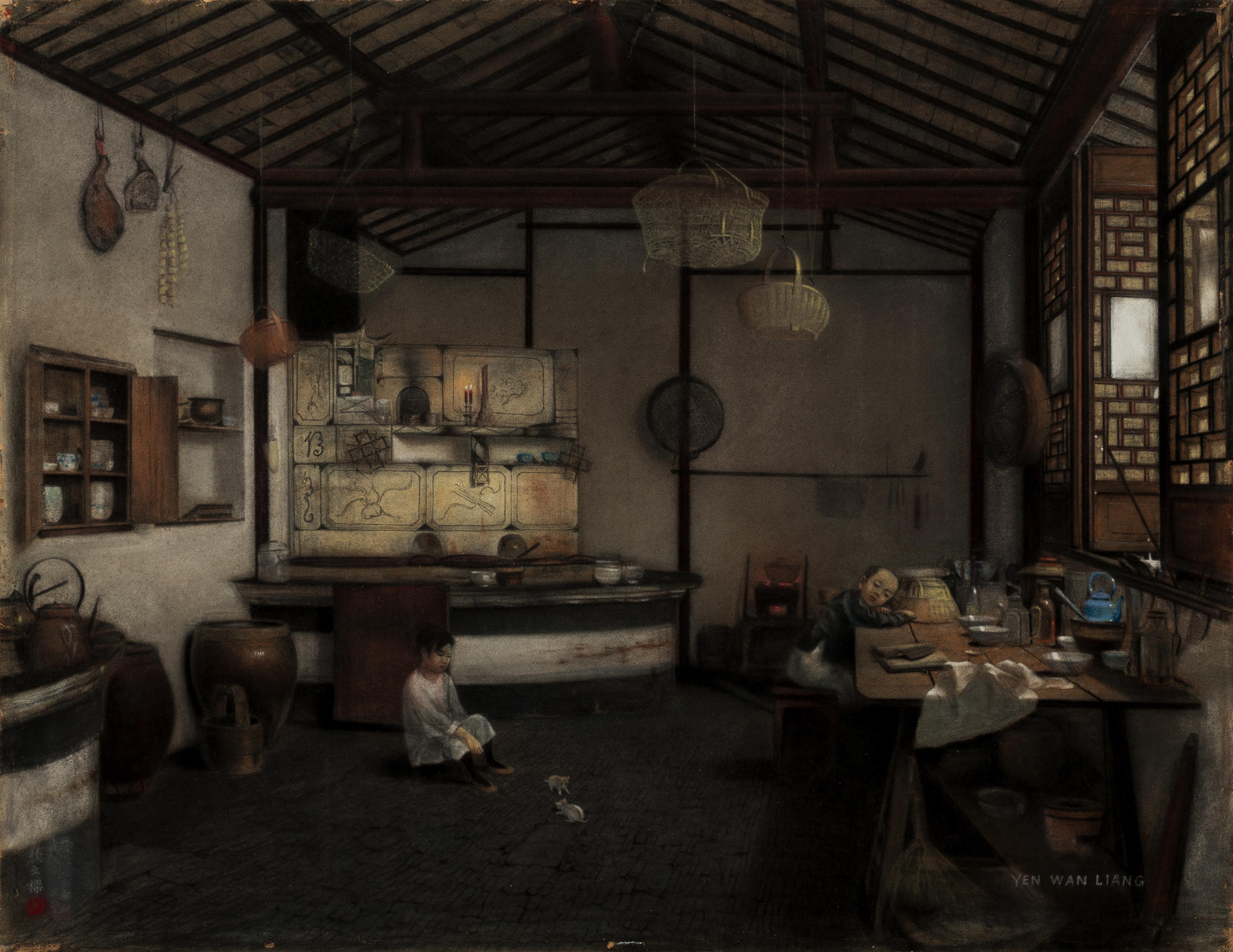 《厨房》颜文樑 47×63cm 纸本粉画 1920年 苏州市公共文化中心藏