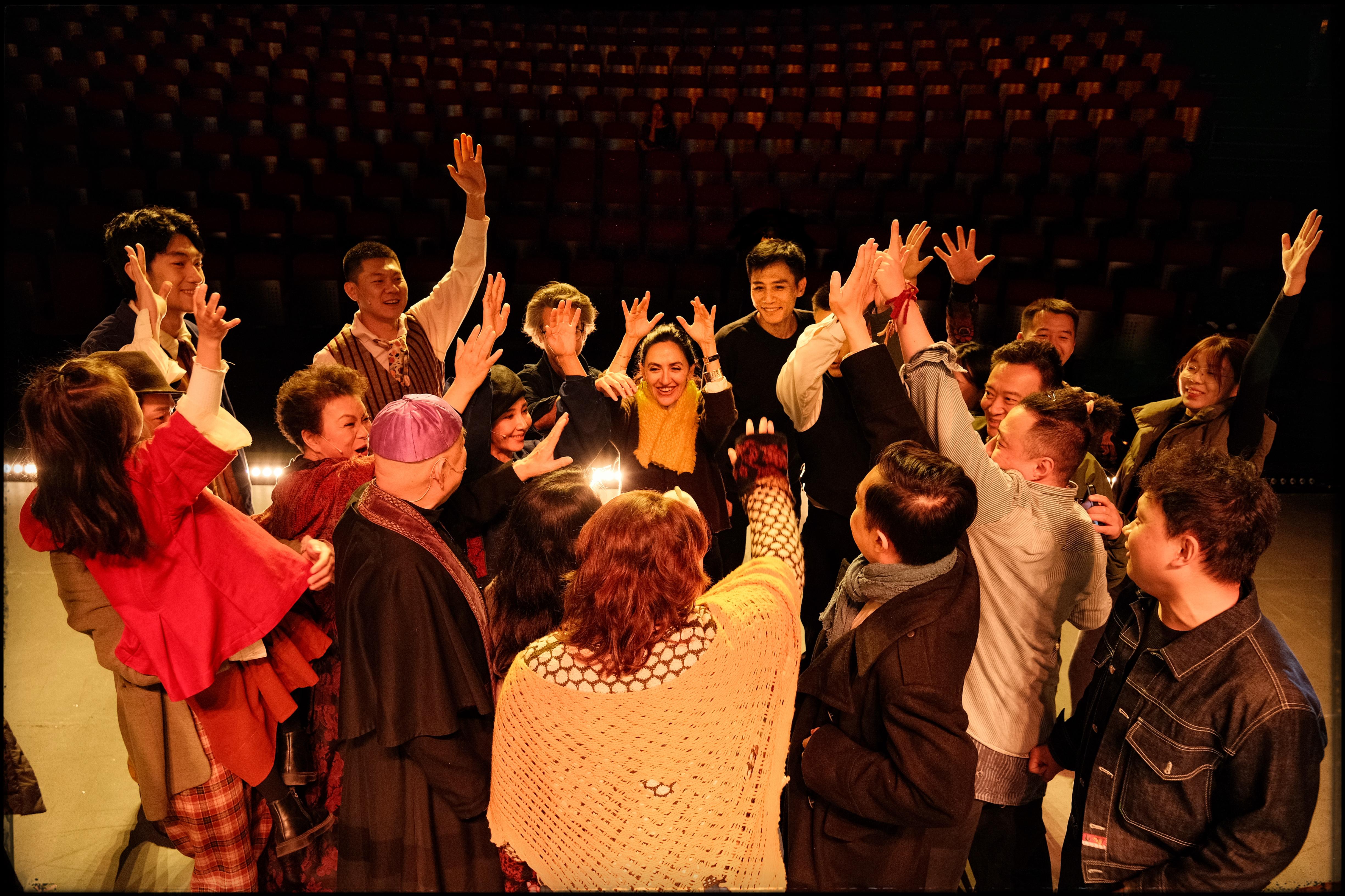 中文版话剧《悲惨世界》剧组欢庆法国演出成功。央华戏剧供图