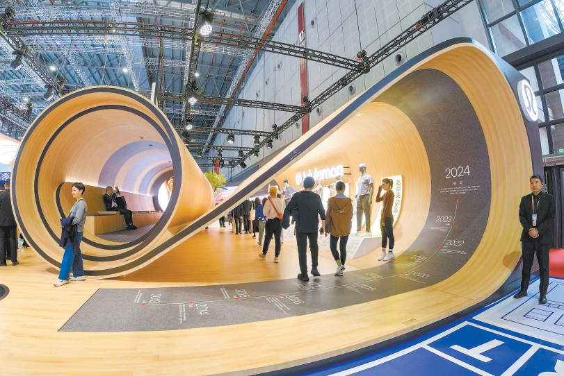在光影变幻中感受空气锁温科技、通过万花镜感知纤维的世界……在优衣库展区,1000平方米的沉浸式展台带观众走进面料的微观世界。“这是今年冬季系列的全球首秀,很快就会在各门店上市。”工作人员介绍,今年进博会首次集结了品牌与三大全球知名设计师的合作系列,展现出最新的设计潮流。