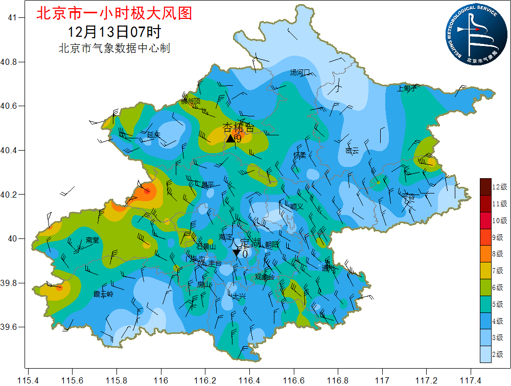 12月13日 6:30,门头沟区发布大风蓝色预警: