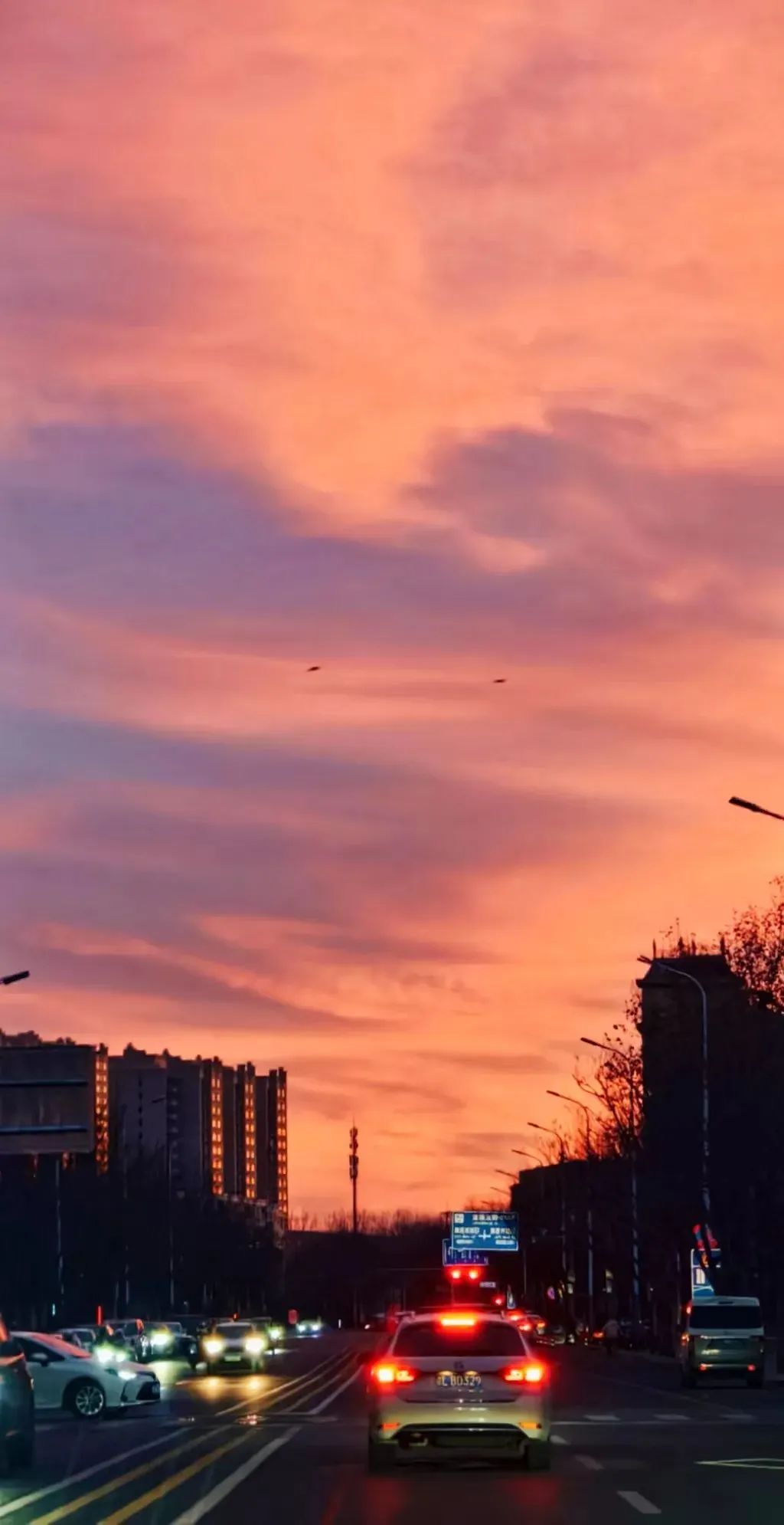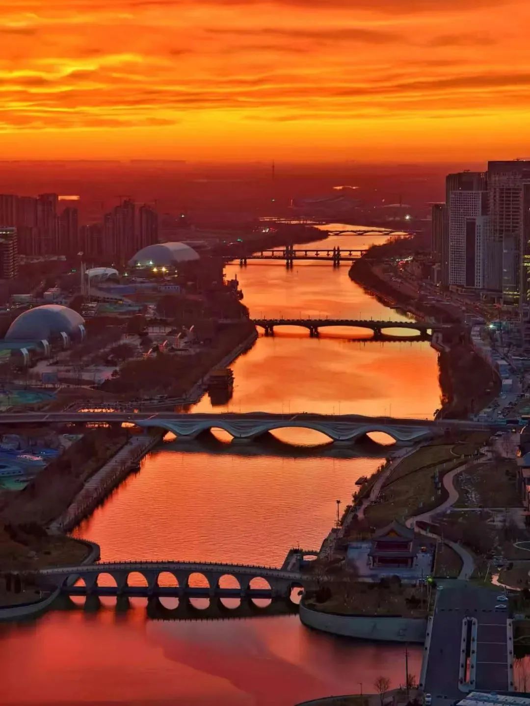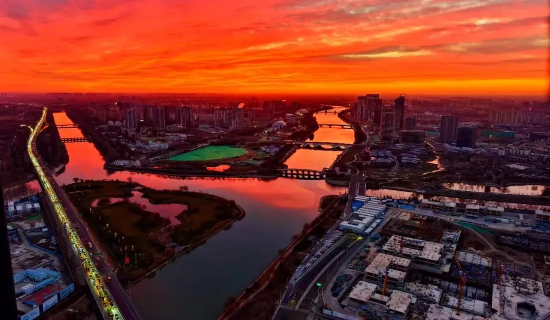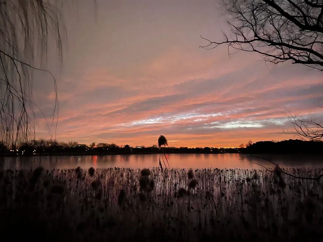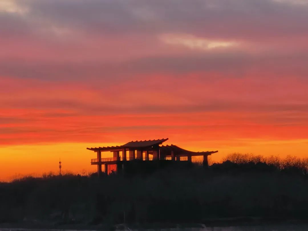 今晨,北京的冬日朝霞缓缓揭开夜幕的面纱,从温柔的粉紫色渐变到炽热的火红色,将天际渲染得色彩交织、美若油画。