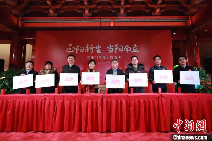 嘉宾们将“庆祝北京中轴线申遗成功”“正阳门箭楼”两枚印章盖在正阳门雕刻凹版画上,留下永久印记,标志着正阳门箭楼正式向公众开放。