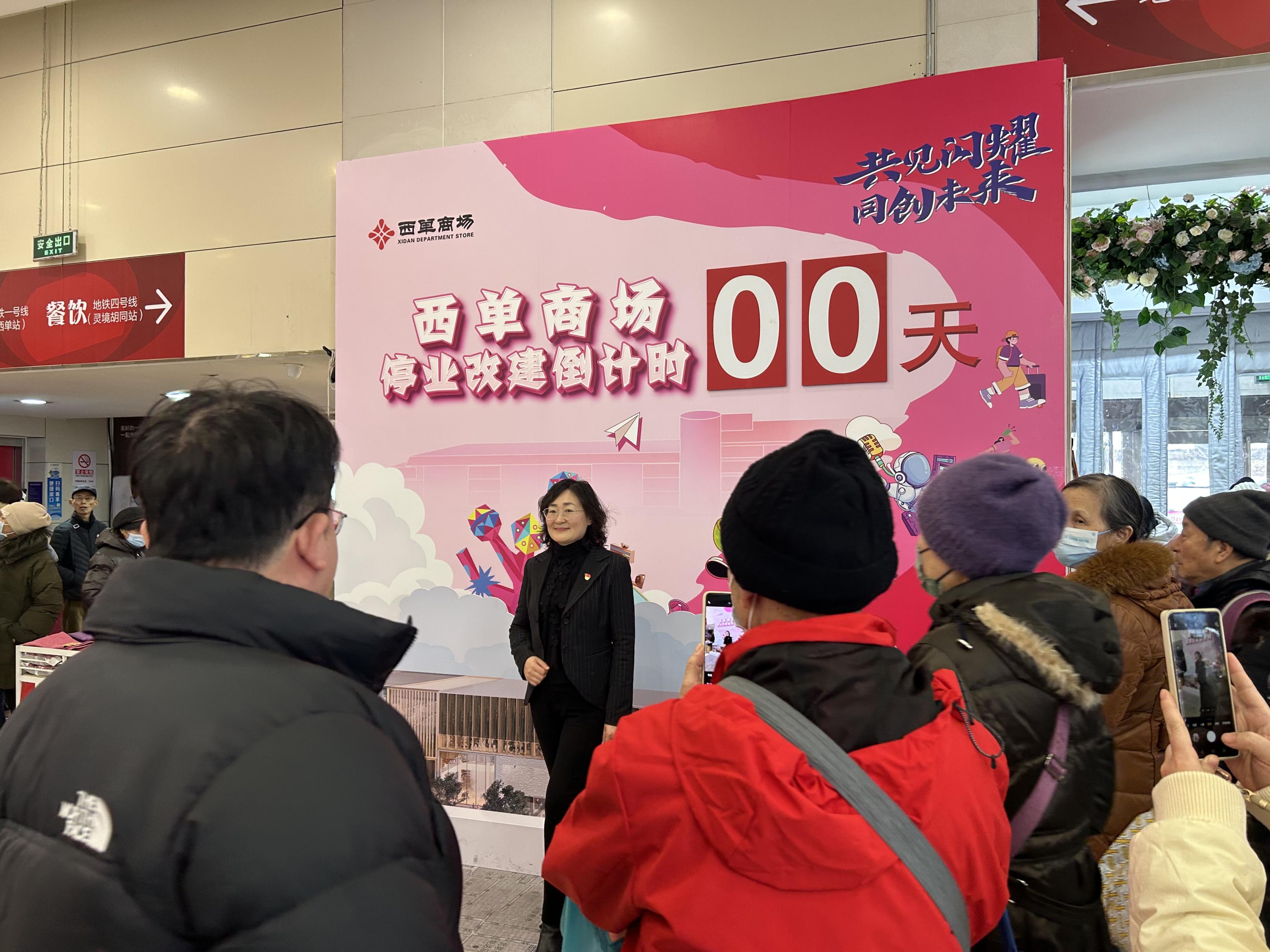 走进商场,写着“西单商场停业改建倒计时0天”的打卡墙吸引顾客们排队合影。“小时候我就住在附近,放学后喜欢和同学相约来逛西单商场。”专程来怀旧的董女士搂着母亲站在打卡墙前,依依不舍地拍照留念,对于她来说,这里有着最美好的童年回忆。