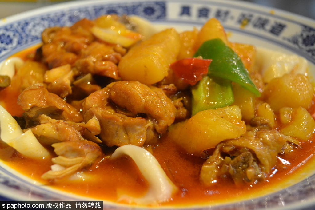 新疆沙湾大盘鸡,在剁鸡块时要一刀下去干净利落,切忌重复用刀,鸡块腌制入味后才能下锅炒,最后收汁出锅要鲜嫩多汁、轻微焦香才算合格。如今,“沙湾大盘鸡”早已不仅是一张美食名片,更是一种文化符号,是新疆味道的代表之一。