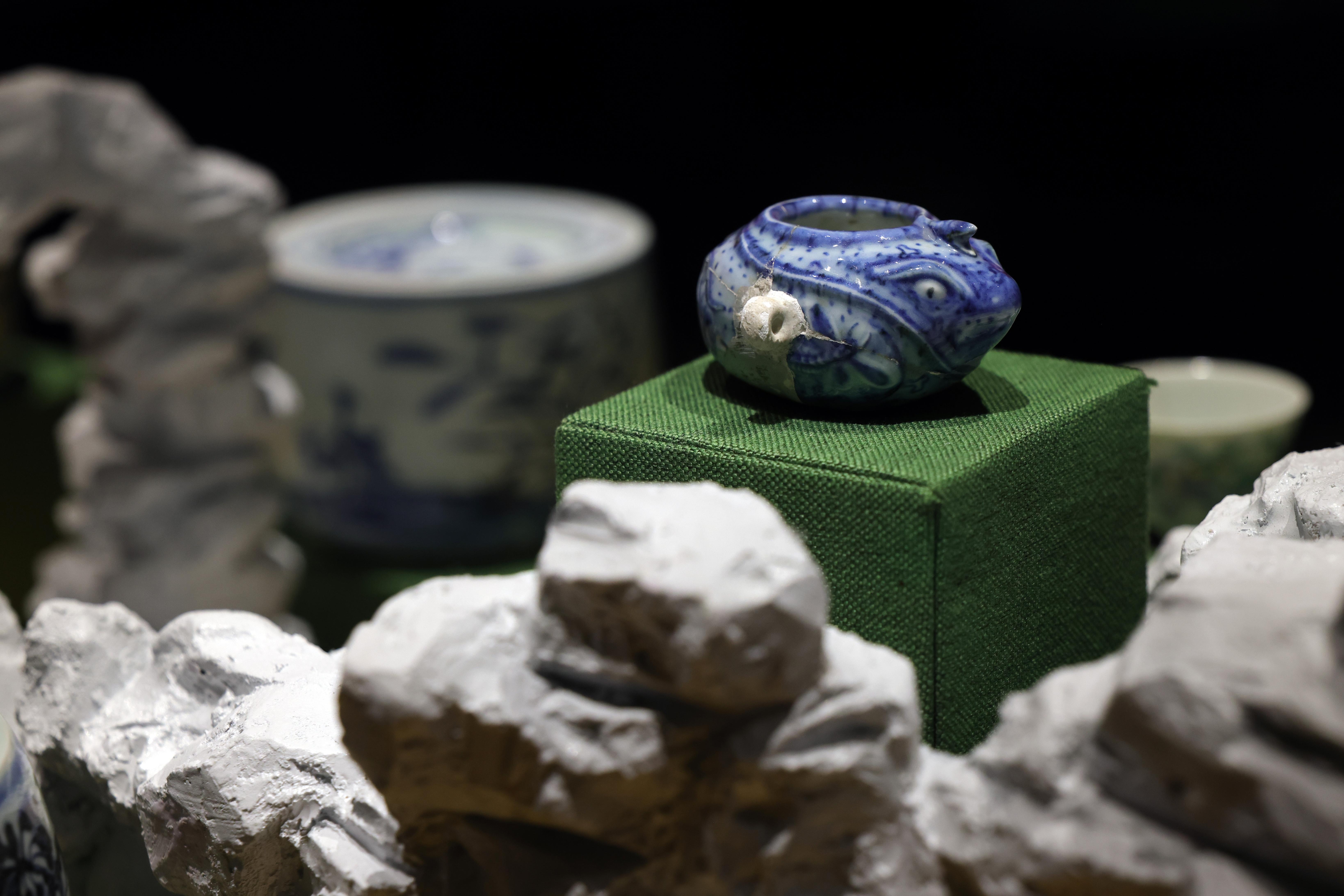 展厅内还设置了触摸御瓷的体验环节。观众触摸的瓷片,来自明代正统年间未烧制成的青花龙纹大缸,约580岁。