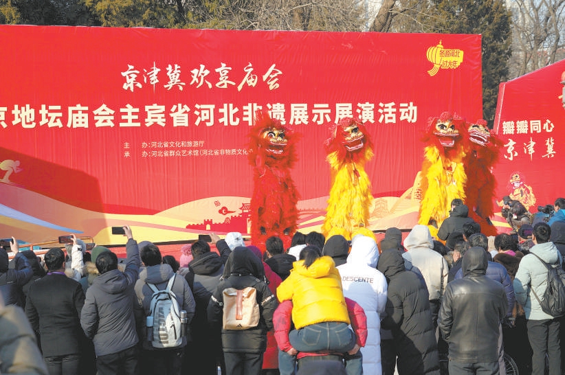 本报讯(记者 李瑶)大年初一,地坛庙会热热闹闹开幕了!今年春节,河北省首次作为地坛庙会的年度主宾省,带来舞狮、飞叉、中幡、京东大鼓、二人台等河北特色非遗展示展演,集中展示燕赵大地丰富的民俗风采。