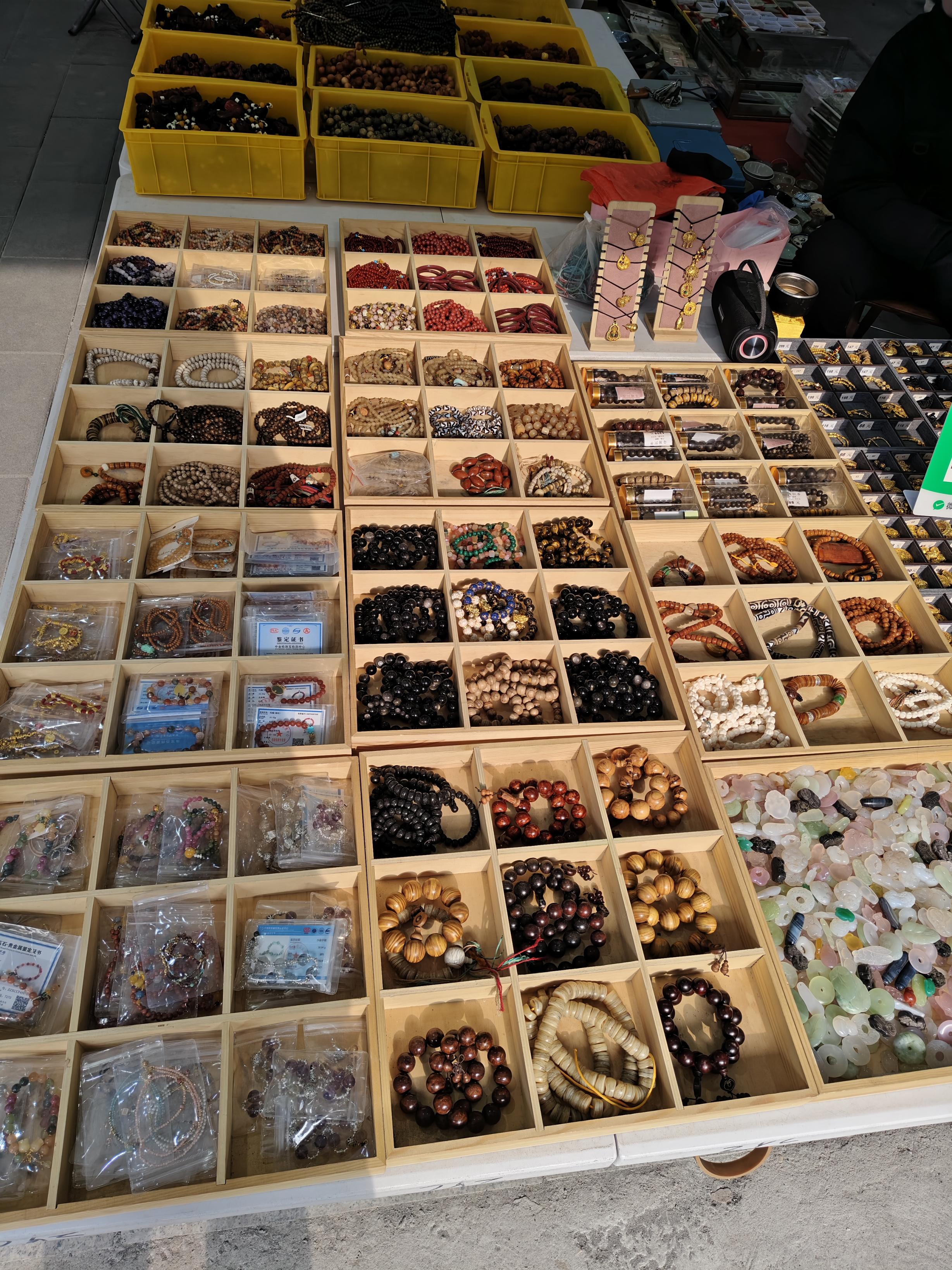 领略非遗风采后,继续向前就看到将近1000平方米的开放展厅内布满了摊位,手串、首饰、瓷器、特色妆盒等商品琳琅满目、数不胜数。“今天是庙会第一天,游客特别多,生意特别好。”摊主彭女士高兴地说。