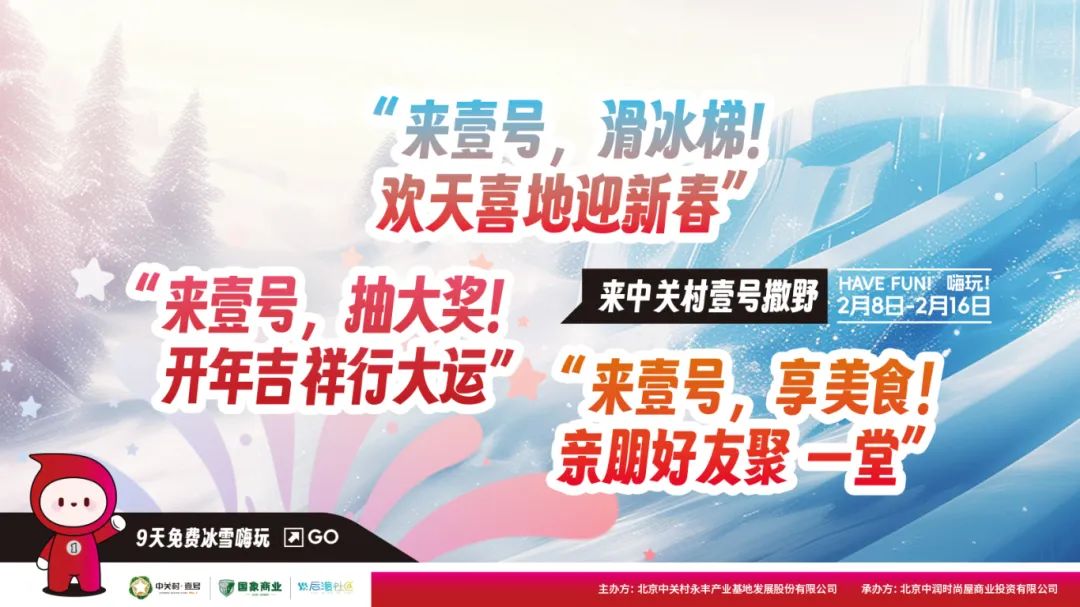这次元宵期间,带上家人朋友,来中关村壹号,滑冰梯、抽大奖、享美食,欢天喜地过元宵!