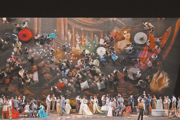 除了过硬的音乐水准,“镜花水月”般的舞台意境也是国家大剧院版《茶花女》的一大看点:独特的巨大镜面斜扣于舞台上方,每当地板上的巨幅“画布”更换,镜中倒映的景象也随之变化,声色犬马的宴会被凄凉凌乱的卧室取代,喧嚷的人群最后徒余孤影几行,繁华易碎,倏忽而逝,颇得小仲马原著精髓。眼下,舞台监督陈欢和同事们又一次搭建起这方“幻梦”天地,宽22米、高12米的镜子将再次映照主角薇奥莱塔的戏梦人生。