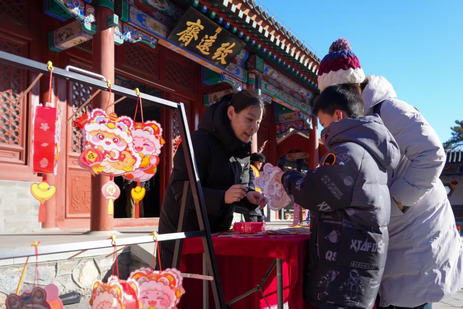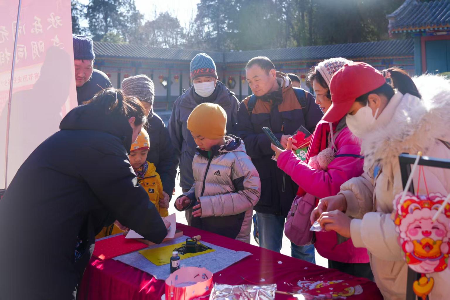 在见心斋正凝堂,园林专业技术人员带领参与者识花认果,认识冬天的园林形态,学习花卉知识,了解花卉文化,并制作一盏“扭扭棒”小灯笼。在碧云寺大雄宝殿南配房,为大家准备了糖画创作体验区,大家可以执“糖”笔进行绘画,用全新的方式体验这项非遗传承的技艺。