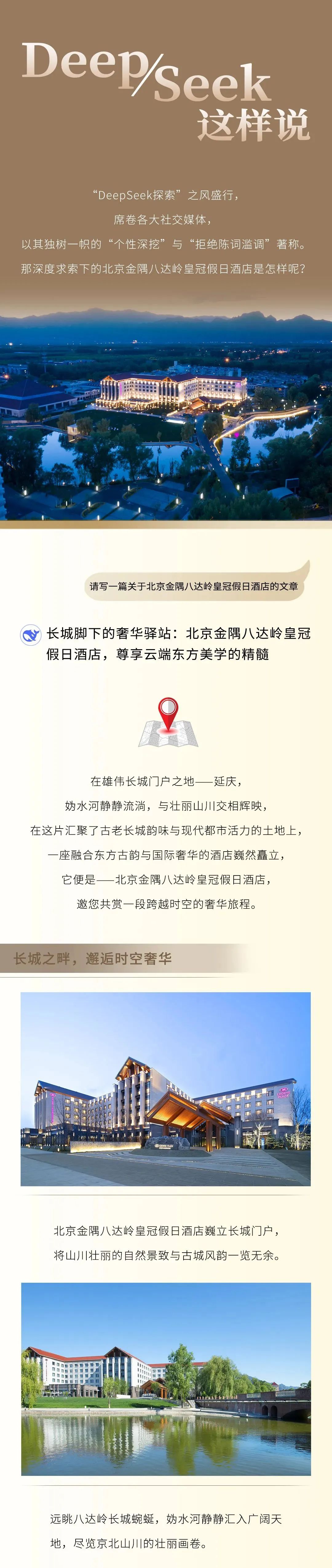 宿在延庆 | 关于北京金隅八达岭皇冠假日酒店,DeepSeek这样说