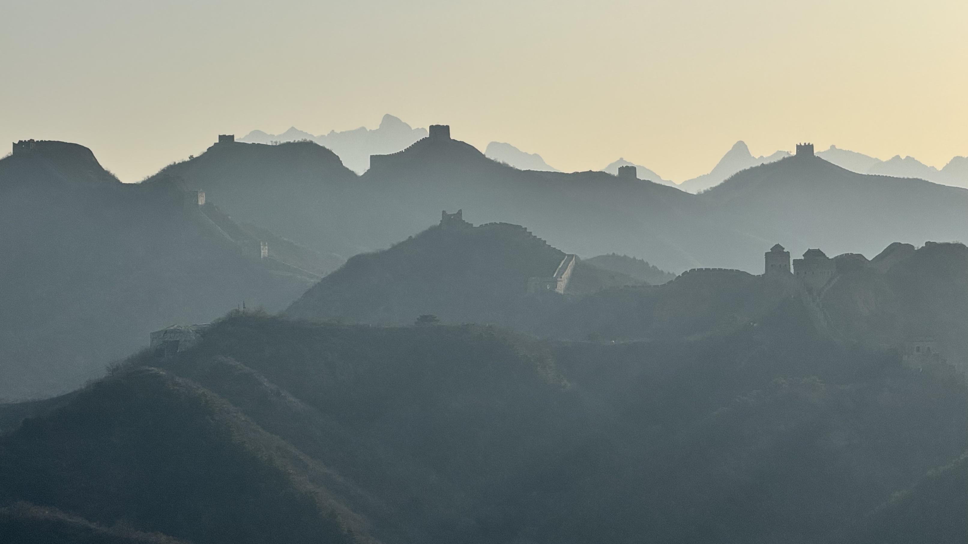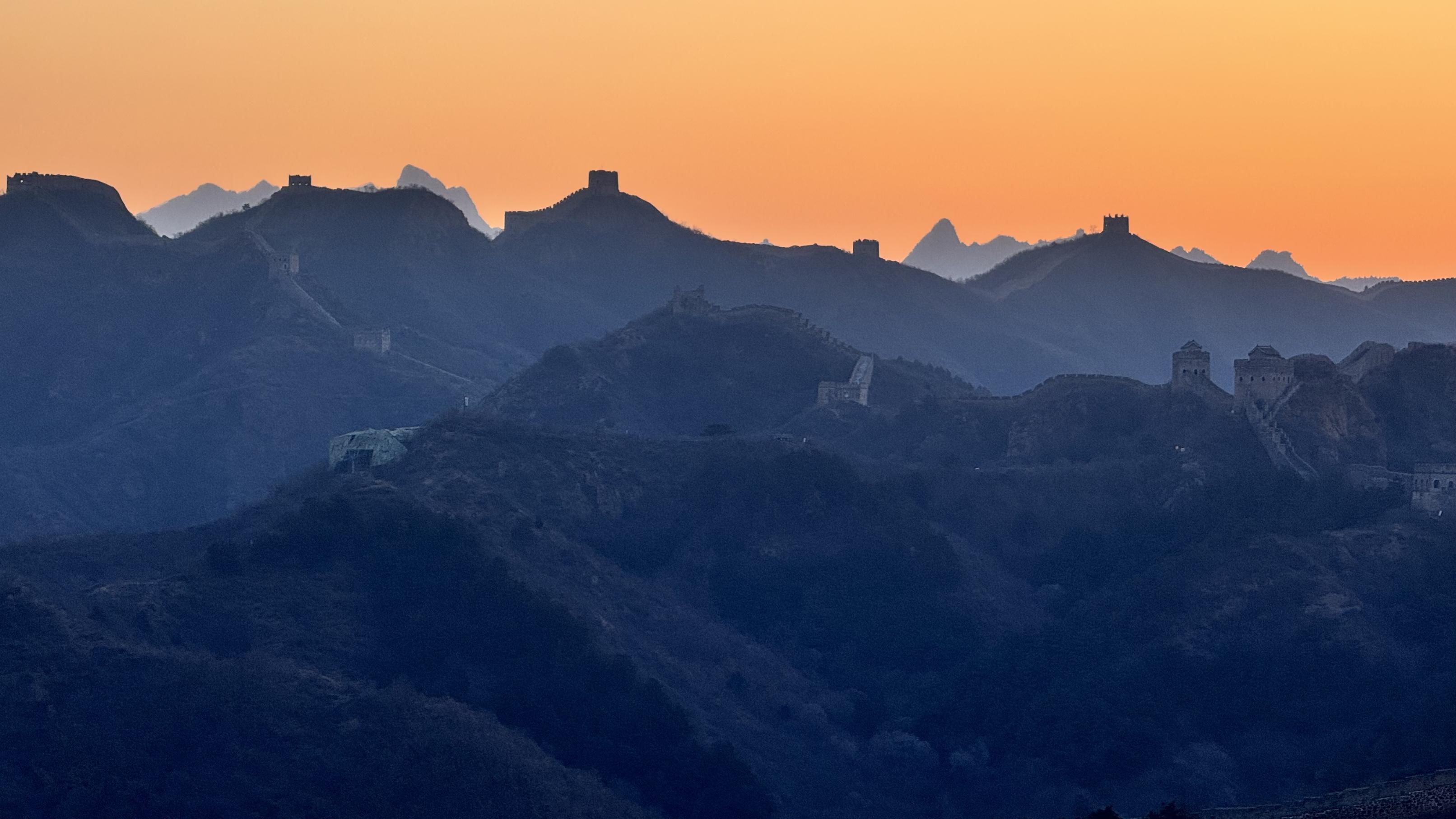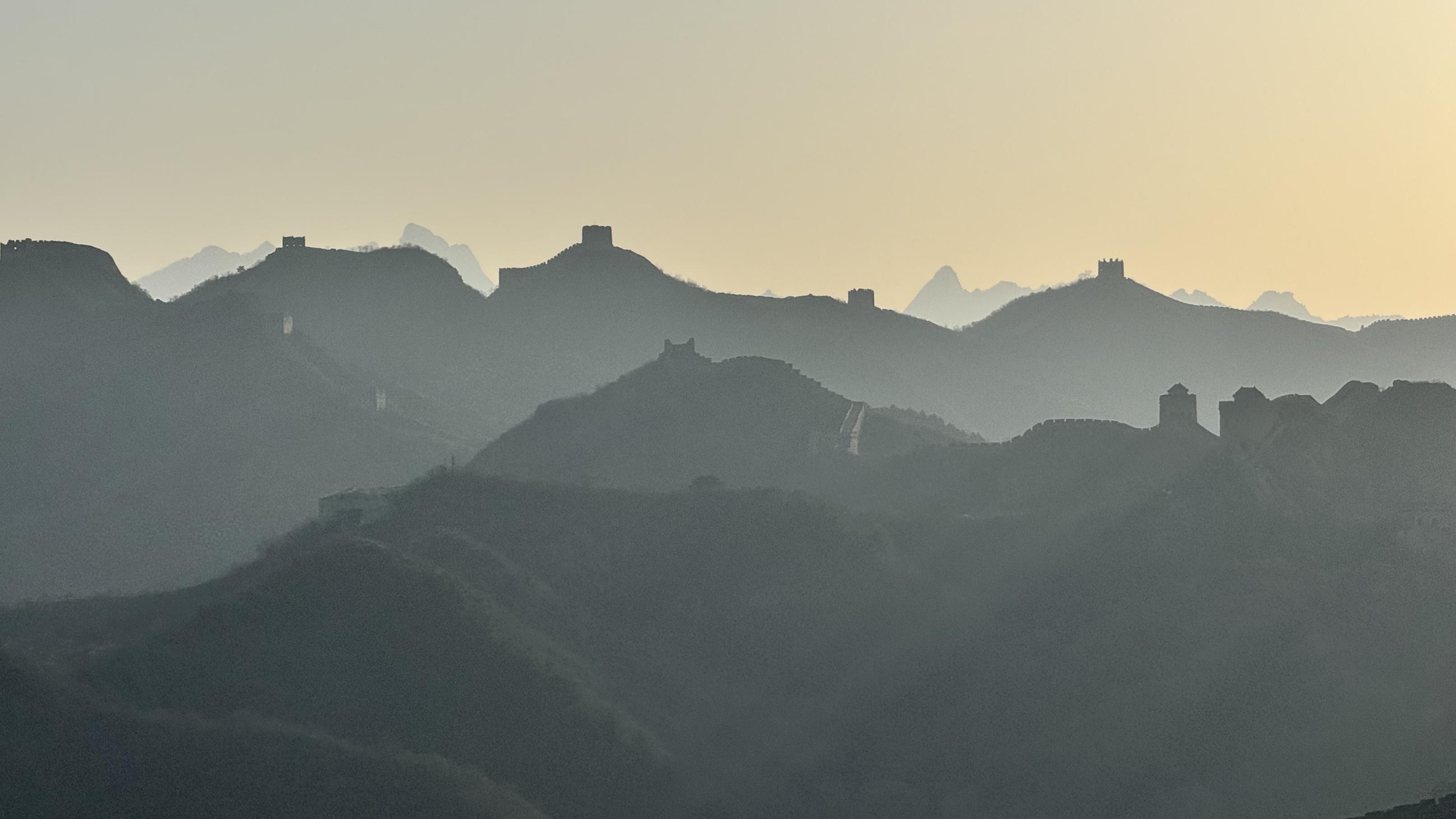 2月25日清晨,河北省承德市滦平县金山岭长城,晨光映照,长城、山峦相互交融,犹如水墨画一般细腻美丽。(作者:周万平)