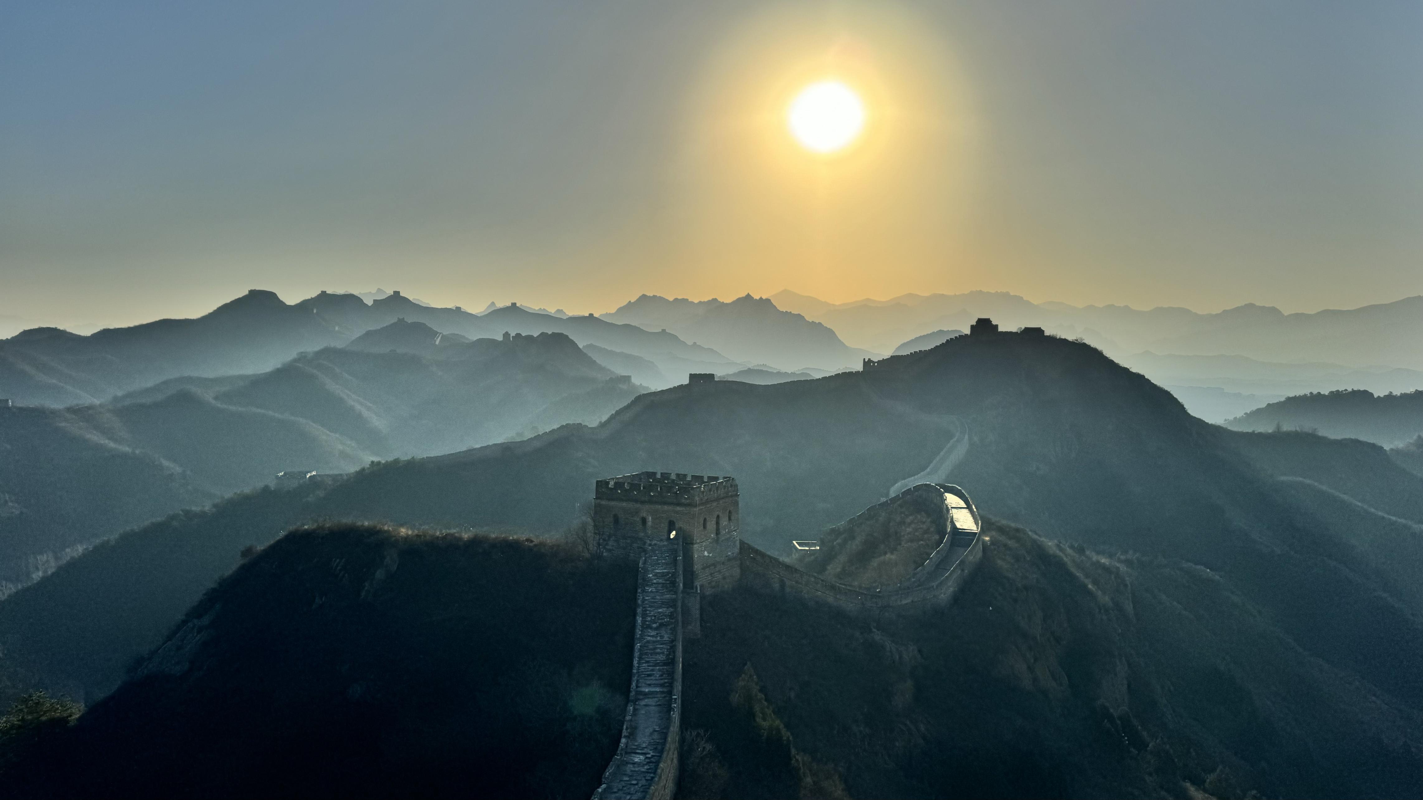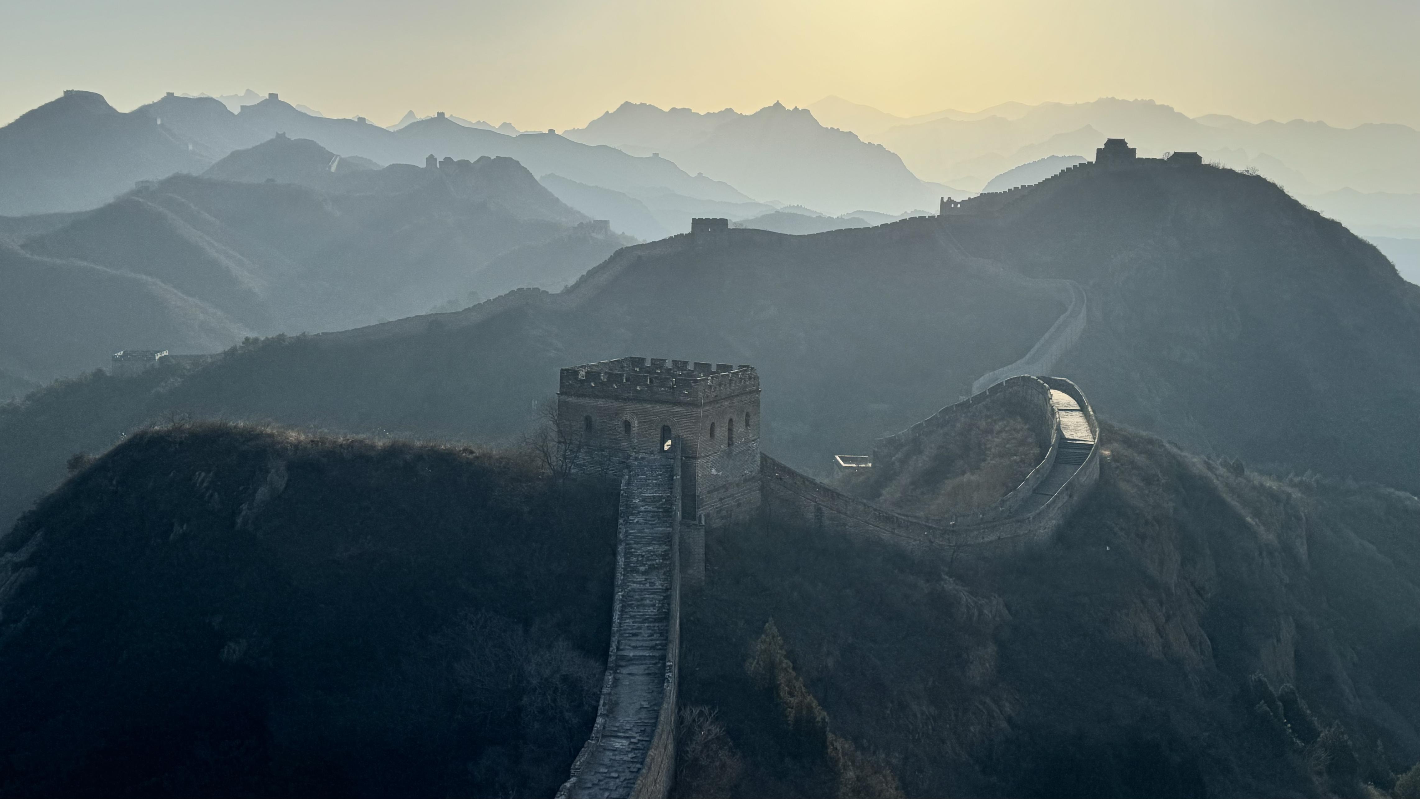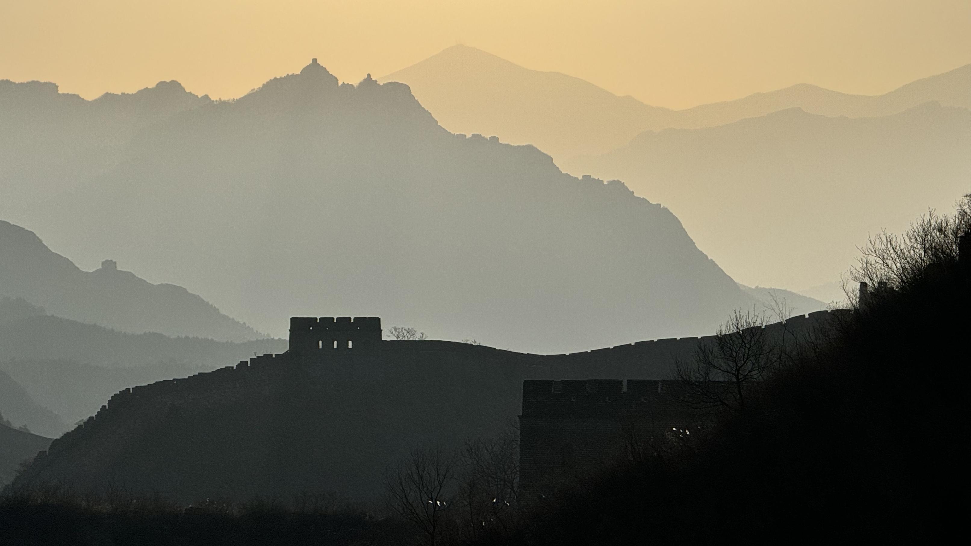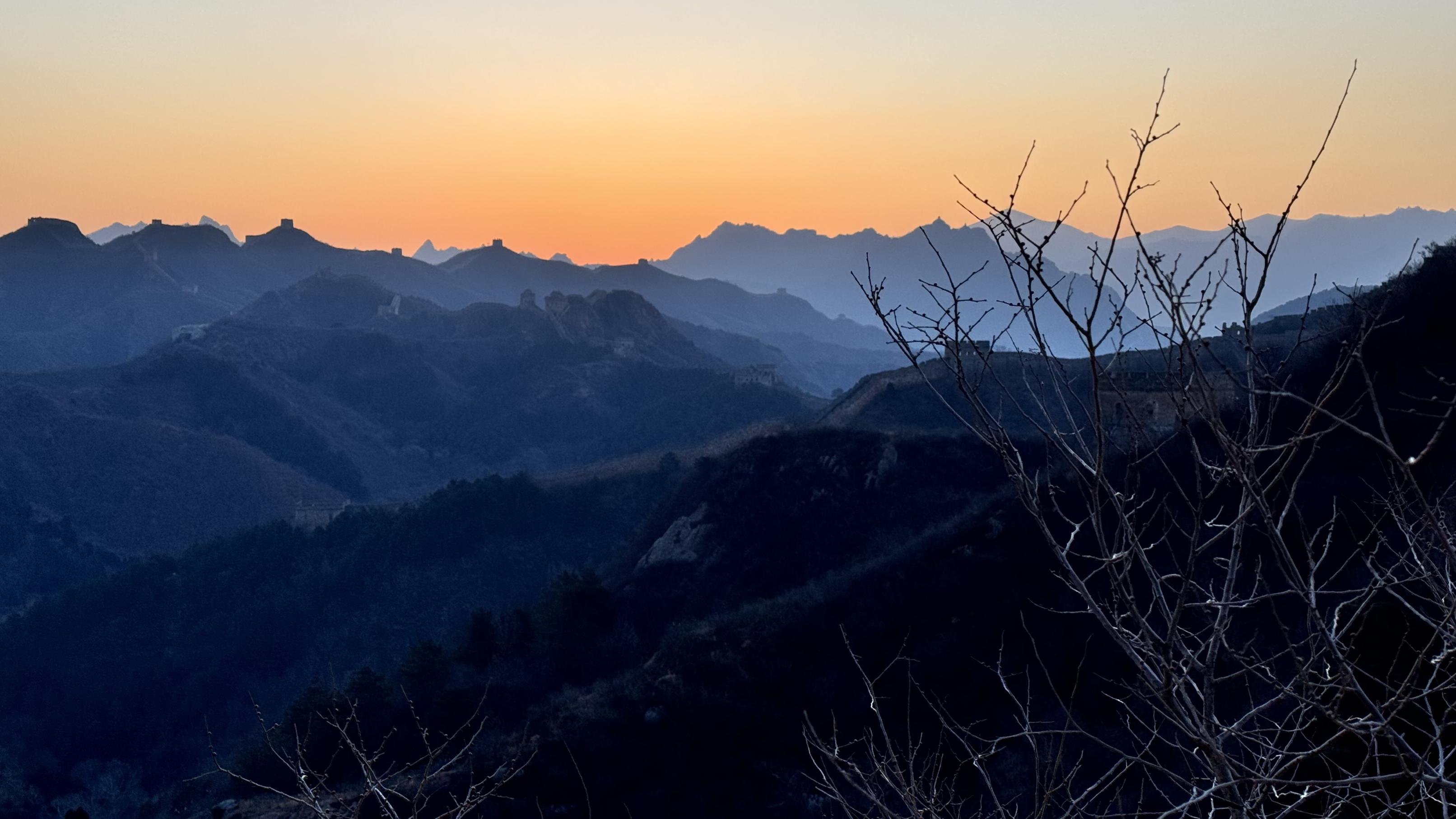 2月25日清晨,河北省承德市滦平县金山岭长城,晨光映照,长城、山峦相互交融,犹如水墨画一般细腻美丽。(作者:周万平)