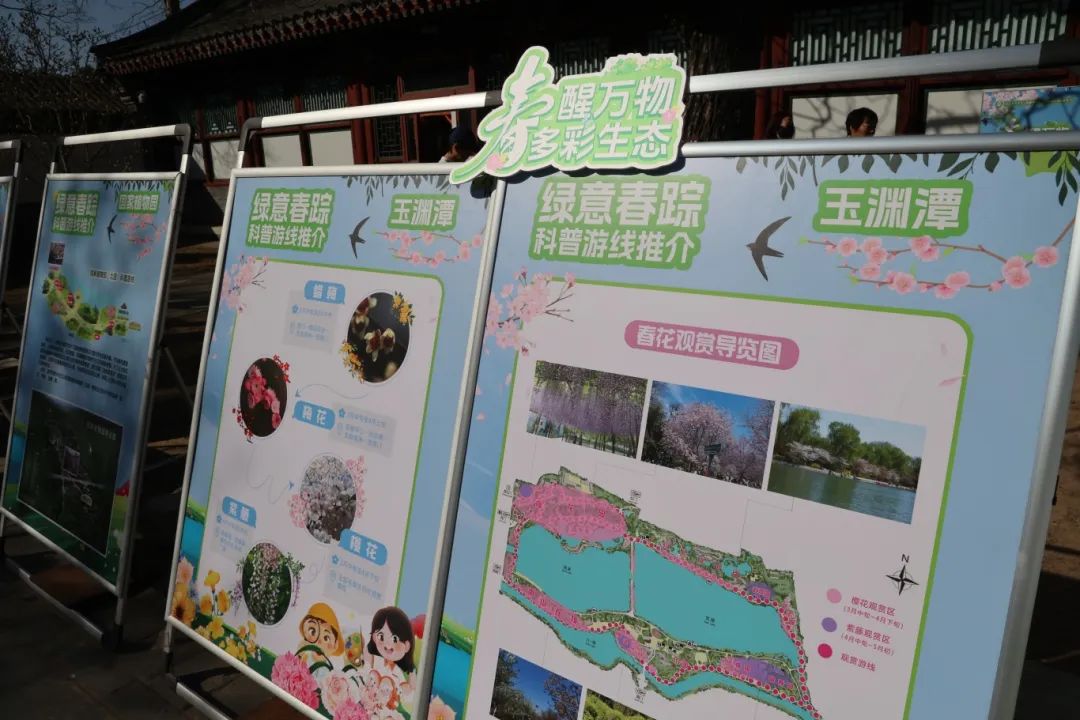 在启动仪式后,颐和园、天坛公园等9家单位以及中国科学院、山水自然保护中心于主会场内开展自然探索市集活动,为参与者提供具有各园特色特点的古树、鸟类科普知识,共同展现各单位在生物多样性保护、古树保护等方面的科普成果或科学技术。所有市属公园以展板的形式为公众推荐具有各园特色的“绿意春踪生态游线”,邀请大家在春日走进市属公园,在赏花游园中学习科普知识。