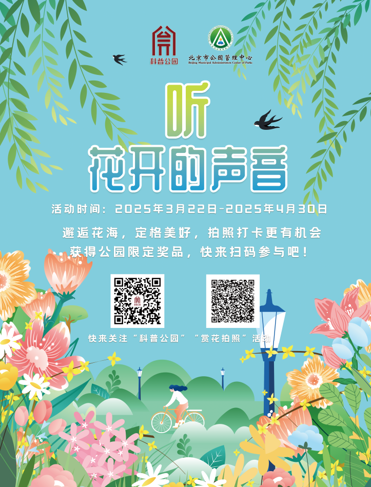 本次精选了市属公园及中国园林博物馆内20条科普赏花游线,内容涵盖玉兰、海棠、梅花、牡丹等春季常见传统花卉、古树、传统鸟类等,期待游客走进市属公园,与大自然一同感受鸟语花香。