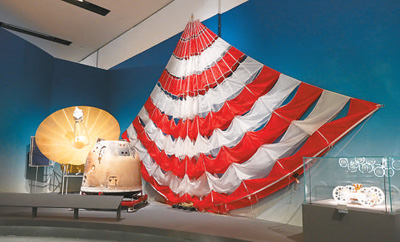 展览中还可以看到中国首台自主研制的大推力氢氧火箭发动机、采用和月壤成分非常接近的玄武岩制成的国旗、嫦娥六号返回器和降落伞等。