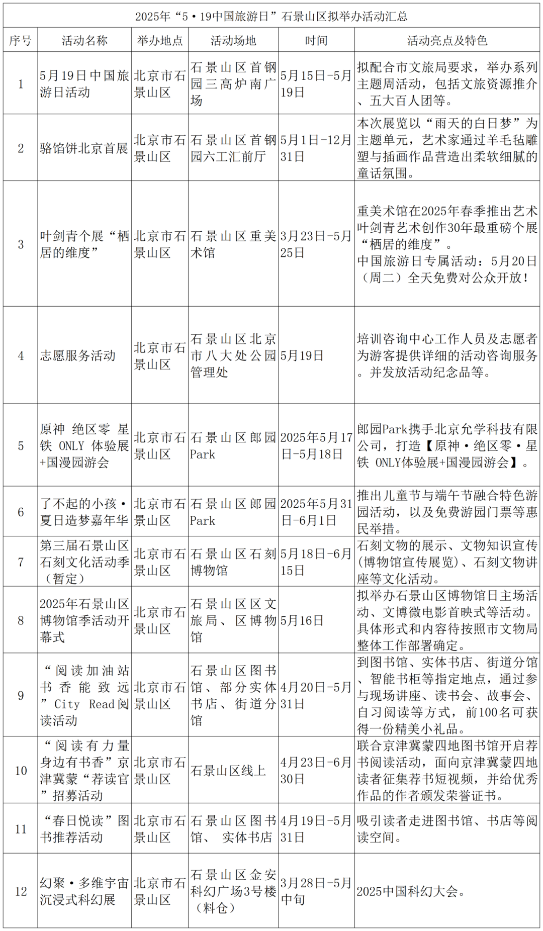 2025年“5·19中国旅游日”石景山区拟举办活动汇总