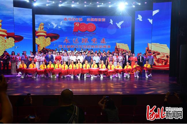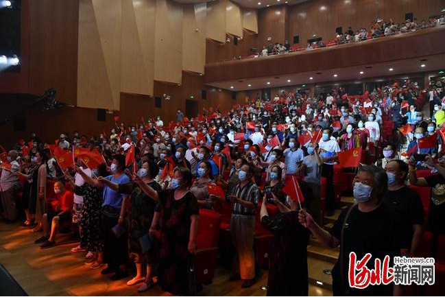 河北新闻网讯(王建)国旗、党旗在观众手中不停地舞动,台上台下齐声高唱,“没有共产党就没有新中国,没有共产党就没有新中国……”6月29日晚,由河北省文化和旅游厅主办,各市文化和旅游部门、河北省群众艺术馆承办的“奋斗百年路 启航新征程——永远跟党走 庆祝中国共产党成立100周年河北省群众文艺优秀作品展演”在河北省群众艺术馆虹光剧场精彩上演。
