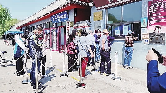 7月14日,记者在涿鹿县黄帝城景区看到, 入口处设置安全排队“一米线”,安排多名工作人员值守, 严格查验游客的健康码和有效证件, 采取限时分流人群措施;在桥西区大境门景区内,工作人员逐一提醒游客采取防控措施,戴好口罩,进入景区测体温,提前查验游客的预约码、健康码,分流人群,引导文明游玩。