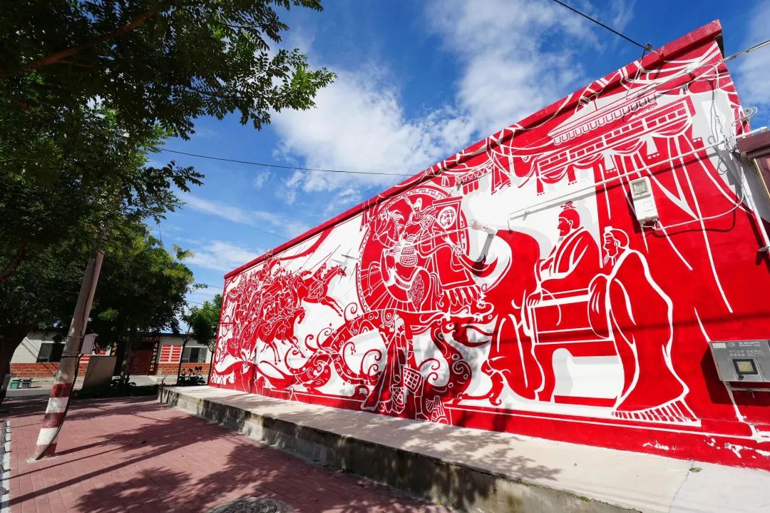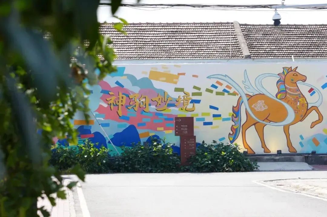 神驹村主街房屋外墙上的“神驹妙境”壁画以红色为主色调,刻画了马儿驰骋、小桥流水、孩童嬉戏的场景。这些壁画不仅美化了乡村环境,更成为市民游客了解乡村文化、激发艺术灵感的重要载体。
