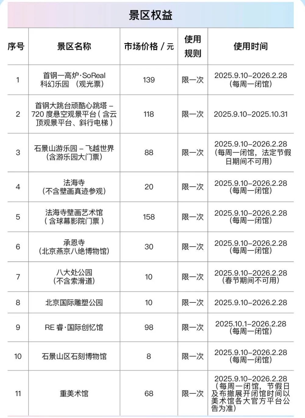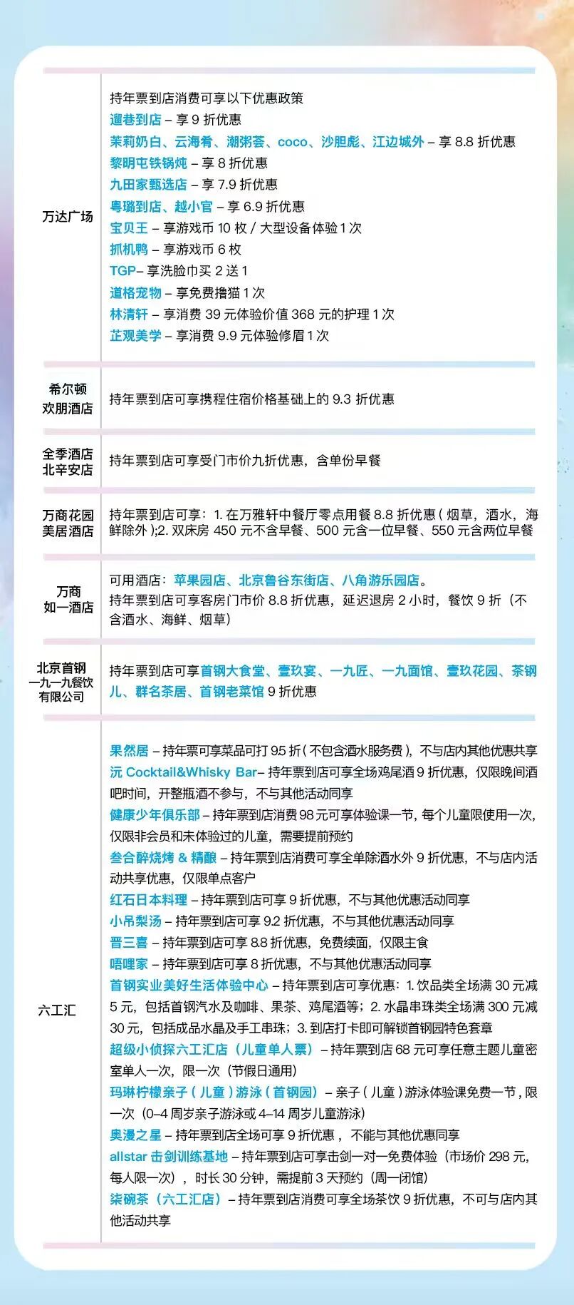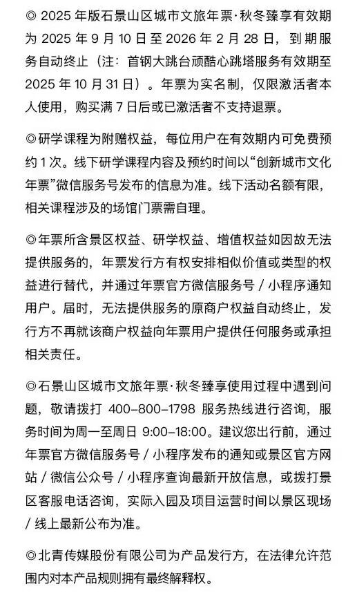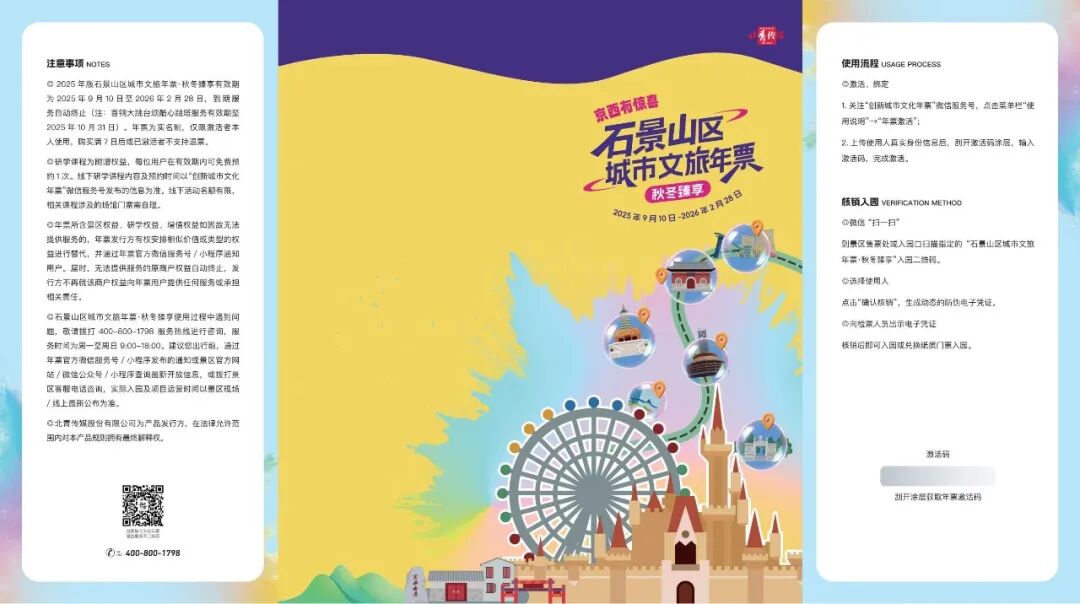 好消息!由石景山区文化和旅游局指导首创集团所属北青传媒股份有限公司精心打造的北京首款区域城市文化年票“石景山区城市文旅年票·秋冬臻享版”即将上线啦!官方背书、资源硬核惊喜价仅 258 元 / 张凭此票即可畅享石景山区。