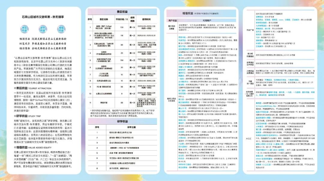 石景山区城市文旅年票秋冬臻享版即将上线啦京西有惊喜,一票玩转石景山