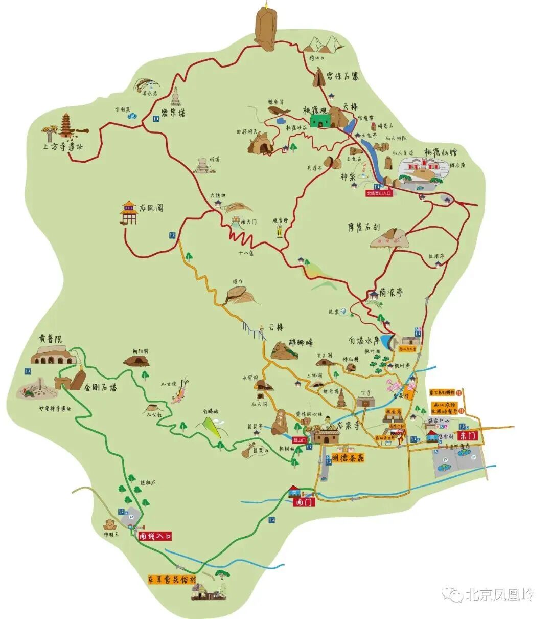 龙泉寺—仙人洞—三佛洞—玄元洞—修仙椅—白塔水库—荫凉亭—摩崖石刻