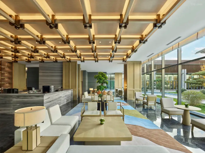 80年代高档饭店代表,A座1989年营业,B座2007年建成,绿化占比超20%,小桥流水、中式庭院藏于闹市。酒店2018年改造的外庭院花园融合亭台水榭与现代景观设计,内庭院两棵一雌一雄的百年银杏古树,被称为“银杏之窗”,秋季银杏金黄铺就“京城最美下午茶背景”。