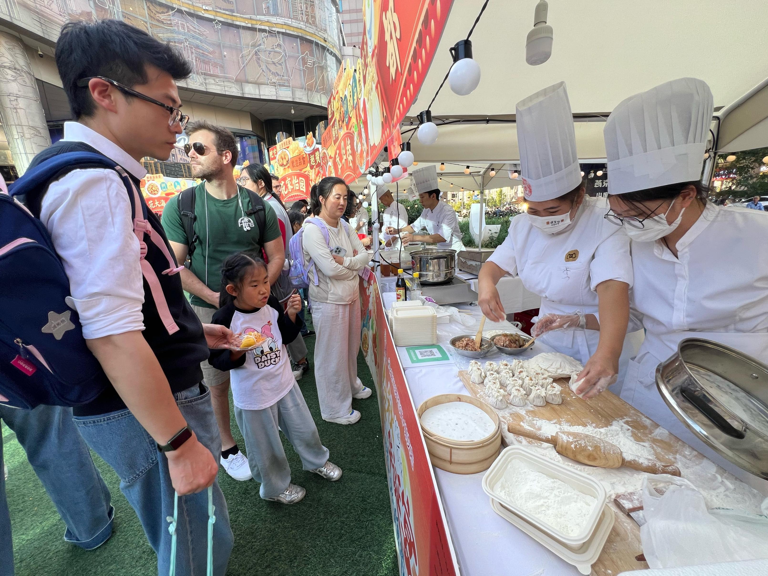 除了品尝美食,现场还有亲子手工区,市民可带孩子体验非遗小技艺;落日放映厅将放映温情影片,伴着初秋的晚风观影,让“逛吃”升级为“沉浸式文化体验”;书法家高秉政现场挥毫,笔锋流转间,“中秋团圆”“国庆安康”“美食传情”的节日祝福跃然纸上。