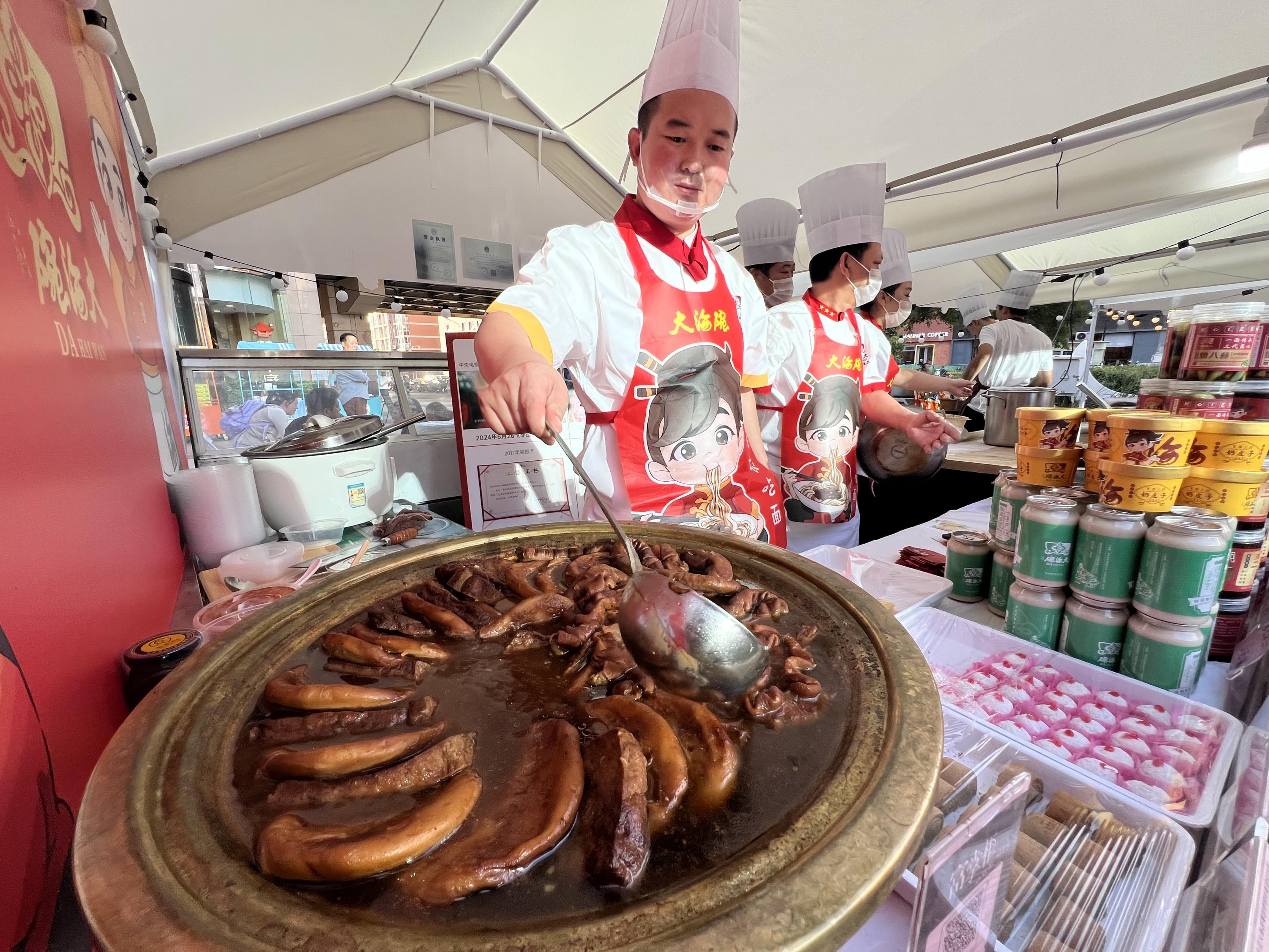9月28日,崇文门商圈非遗文化美食节在新世界南馆户外广场开幕。十余家老字号餐馆带来各自的看家手艺,现场制作美食飘香,过往消费者纷纷停下脚步,品味这场充满京味儿特色的美食盛宴。美食节将持续至10月12日。