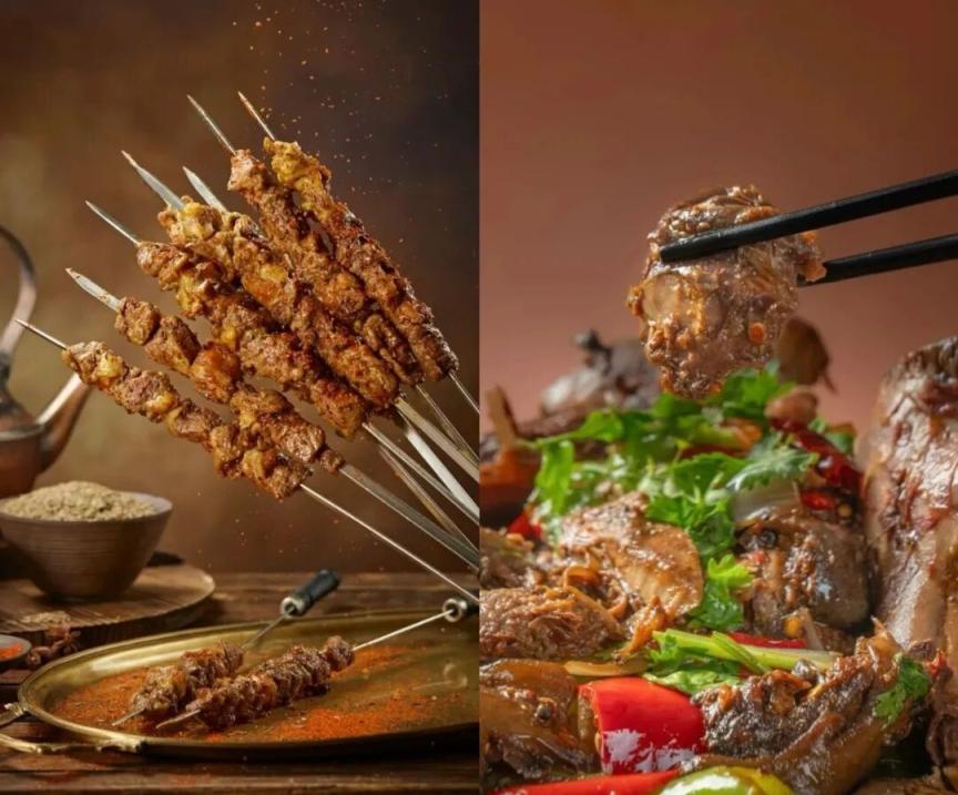 新疆烤串、手抓饭,肉香直给,馕卷着吃更带劲。