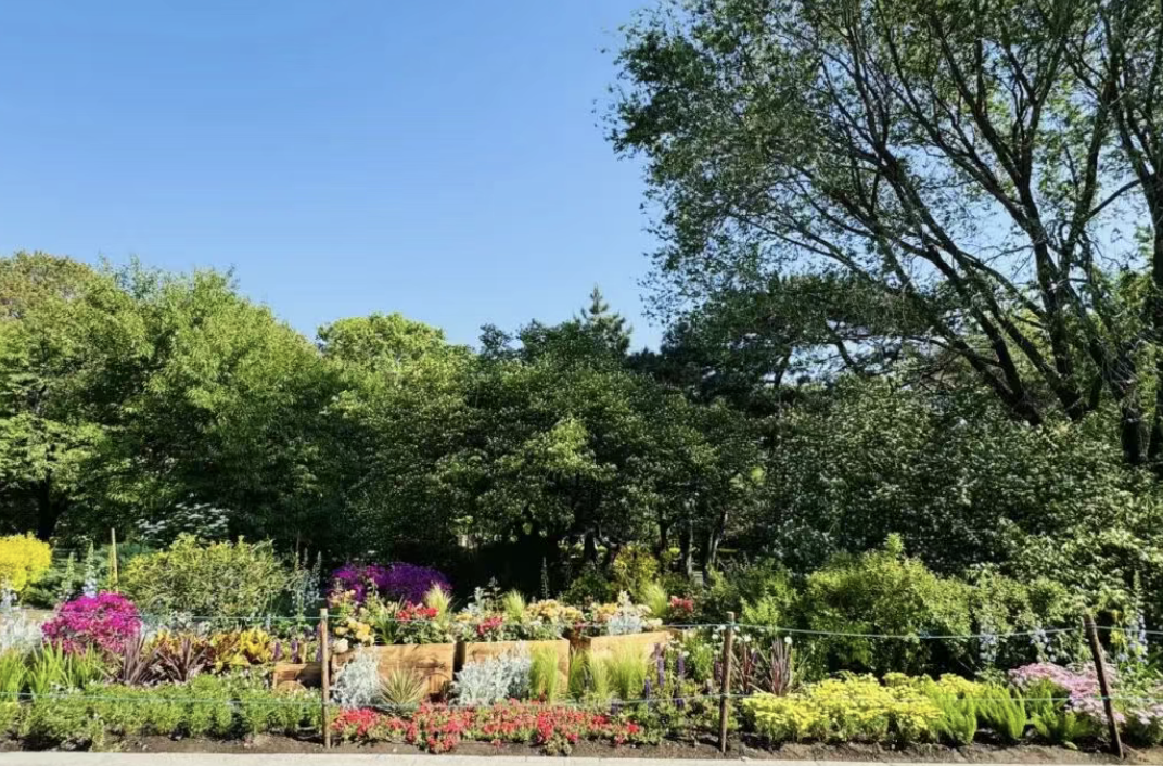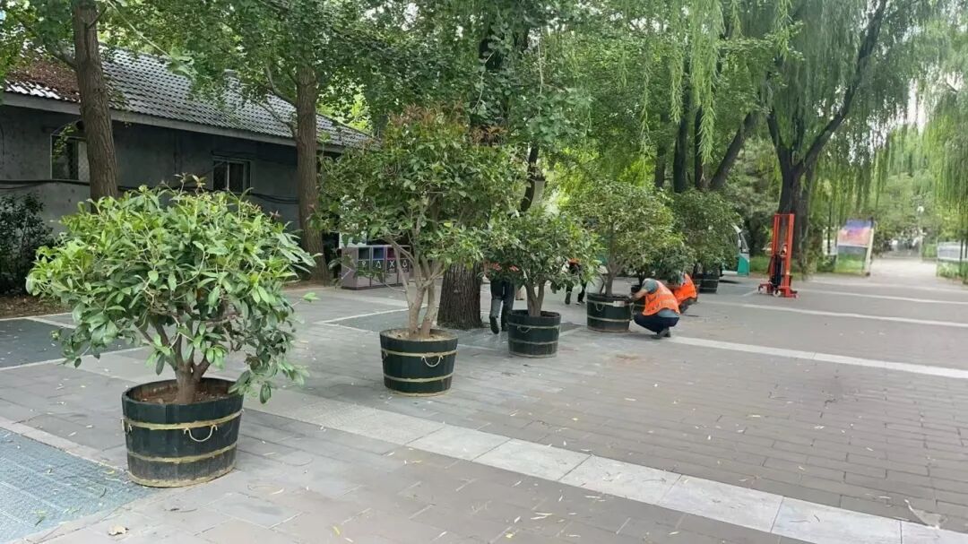 樱花园大草坪上,十余株颐和园盆栽桂花与园内7000余平方米的花卉布置相得益彰,延续花事浪漫。
