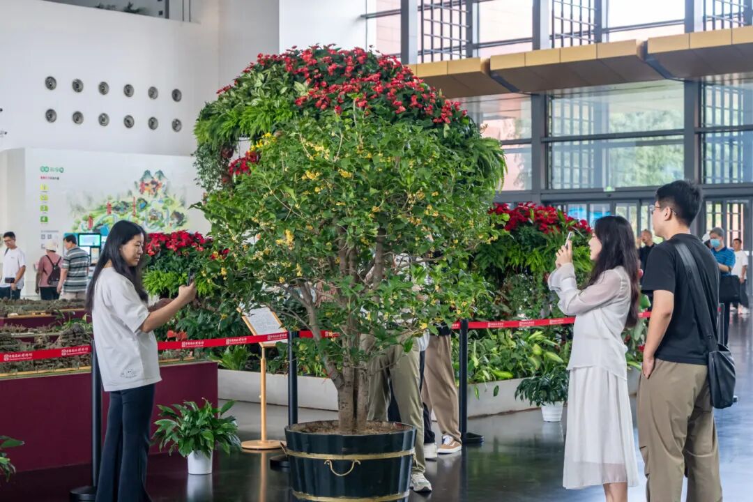 入口广场、大厅和四季庭精心布置14株盆栽桂花,与馆内展厅、室内外展园相映成趣。